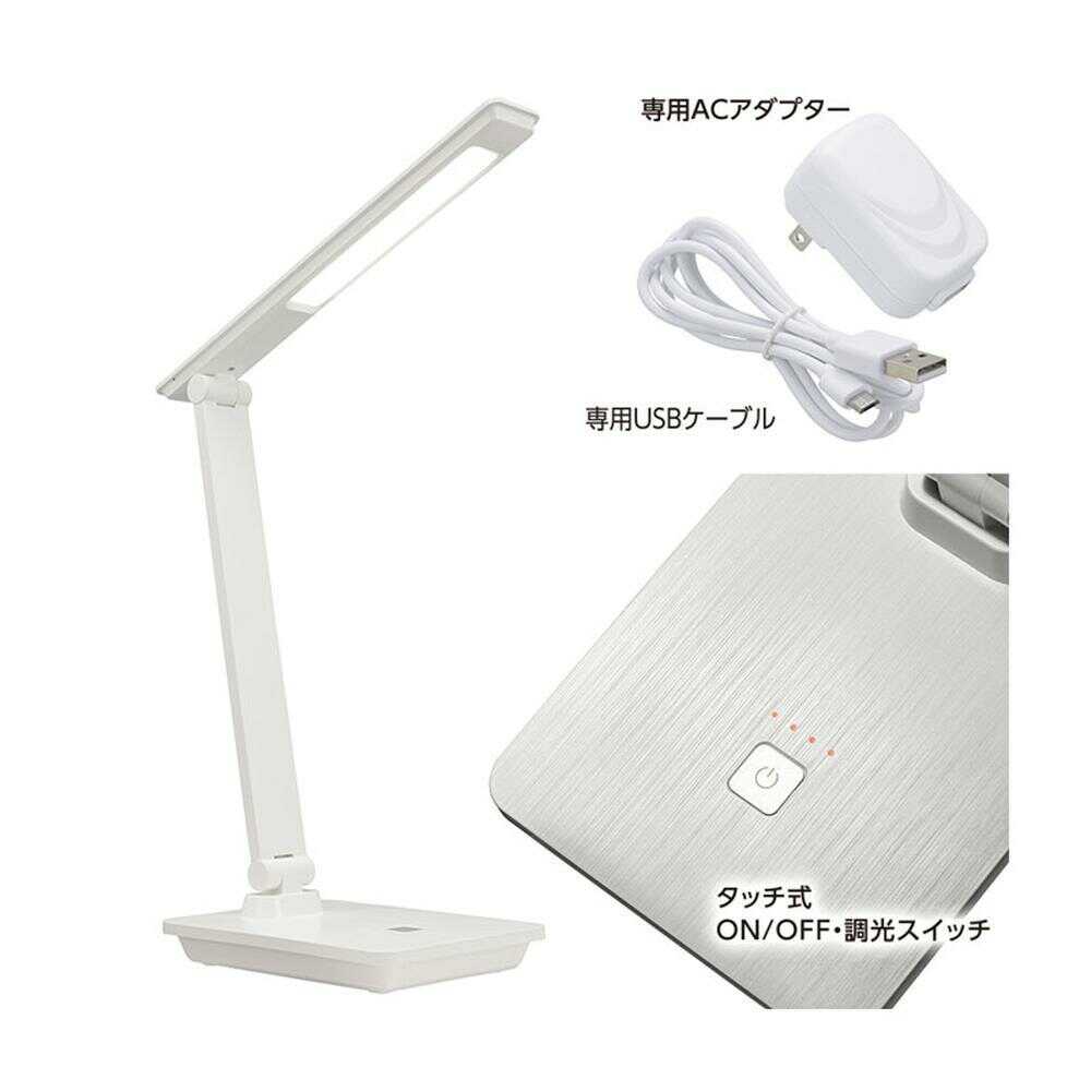 照明 デスクランプ LED ホワイト 昼白色 充電式 コンセントのない場所でも使える 3段調光 タッチ式 読書 学習 精密な作業