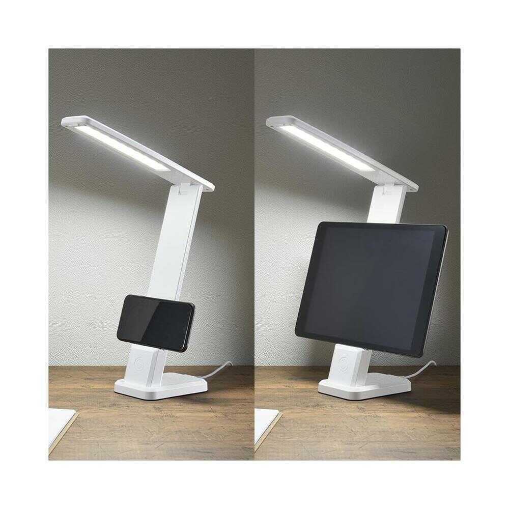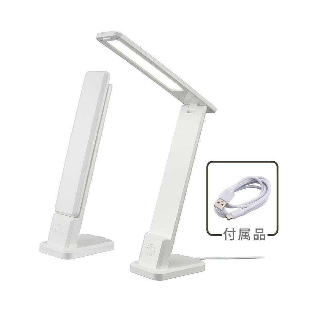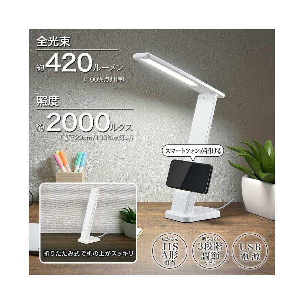 照明 デスクランプ LED ホワイト 昼白色 折りたたみ式 広がる光 調光 明るさを3段階調節 スマホスタンド USB電源式 読書 学習 精密な作業