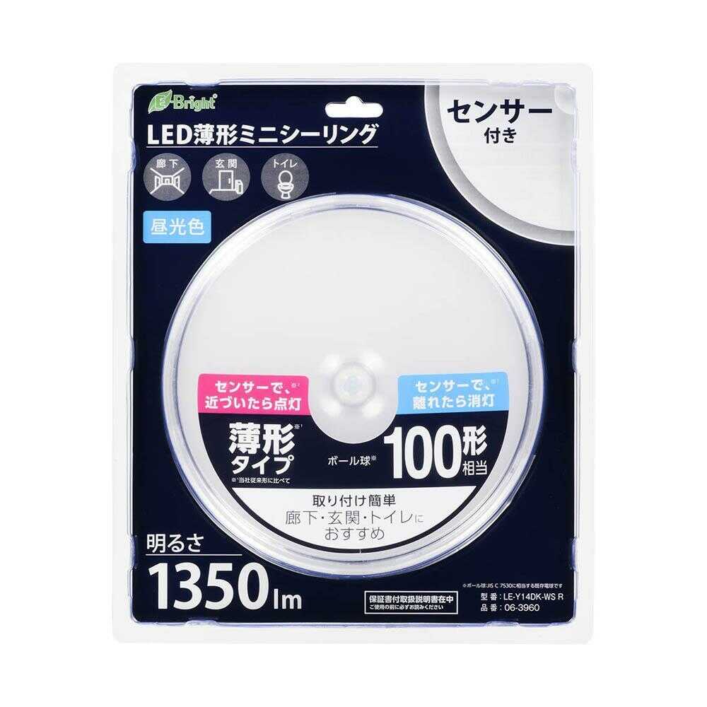 照明 薄形 ミニシーリングライト LED 100形相当 昼光色 人感センサー 明暗センサー 廊下、玄関、トイレに最適 省エネ