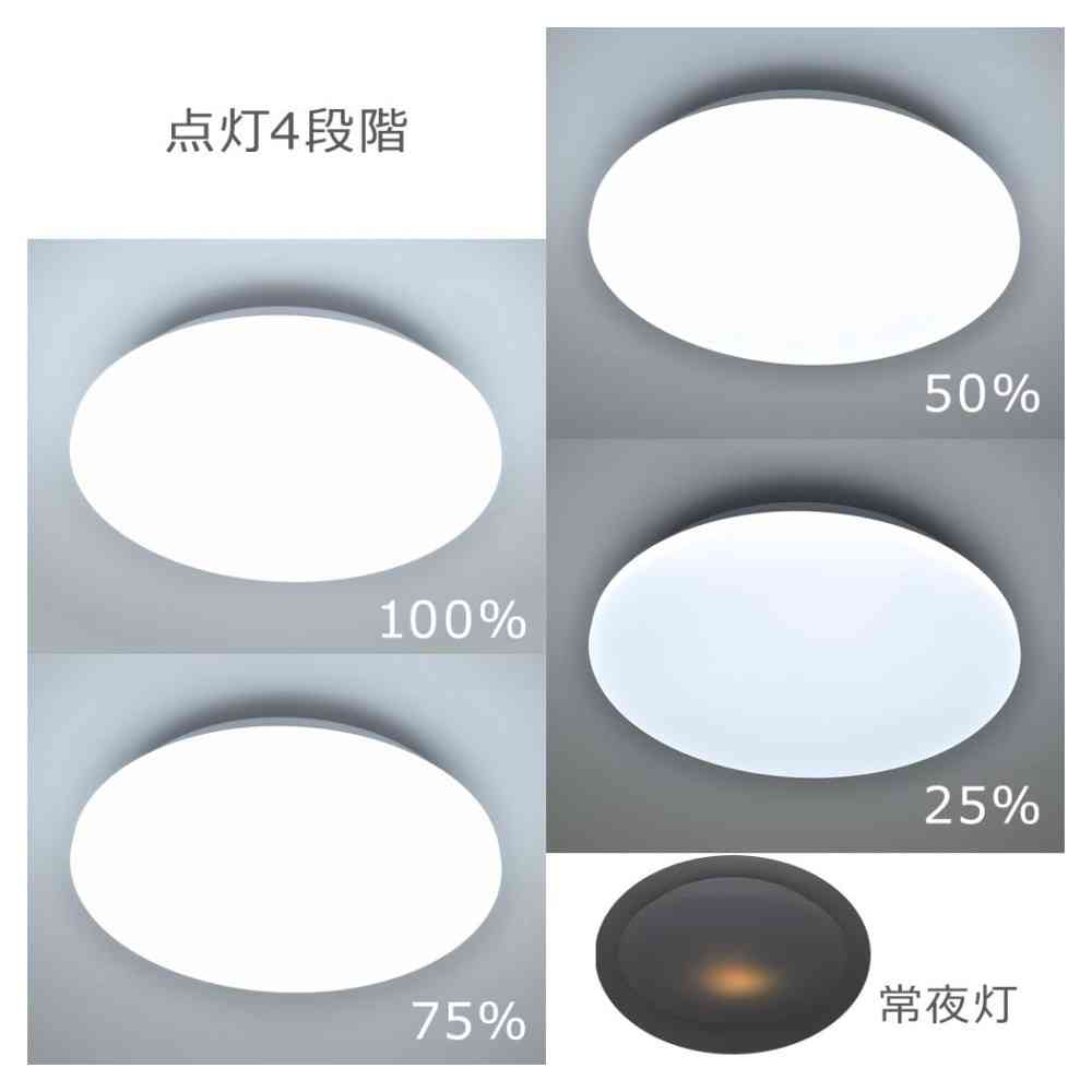 ● 直径40cmのシーリングライト ● 明るさ4段階調光 ● 明るさ最大3200ルーメン ● 適用畳数は~6畳 ● 30分・60分のオフタイマー付き ● 光源色は昼光色 ● リモコン付き ● LED5年保証対象商品