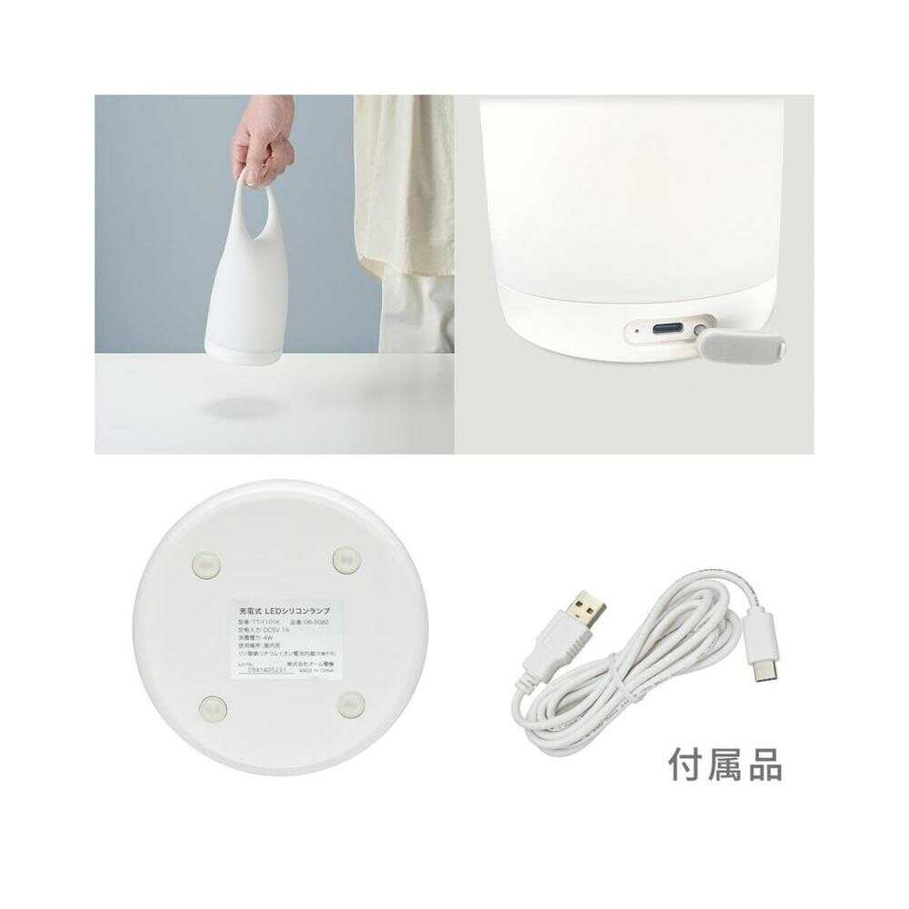 ●シリコン素材のテーブルランプ ●持ち運びができドアにも掛けられ、ベッドサイドなどいろいろな場所で使えます ●3段階調光式(100%/約25%/約2%) ●プッシュ式スイッチ(3段階調光、ON/OFF) ●引っ掛け使用時は底部の滑り止めが3段階調光式ON/OFFスイッチになります ●USB充電式(USBType-C)