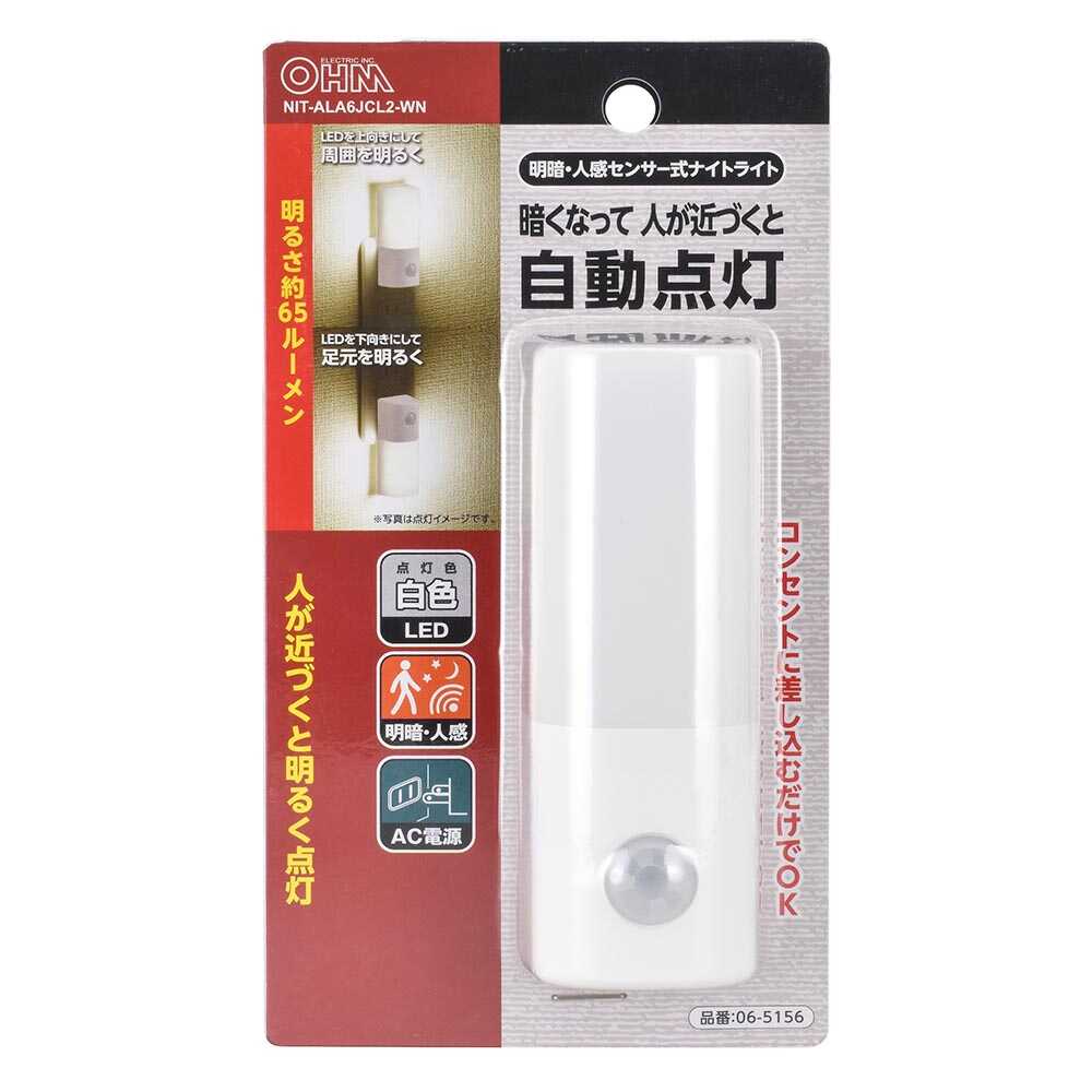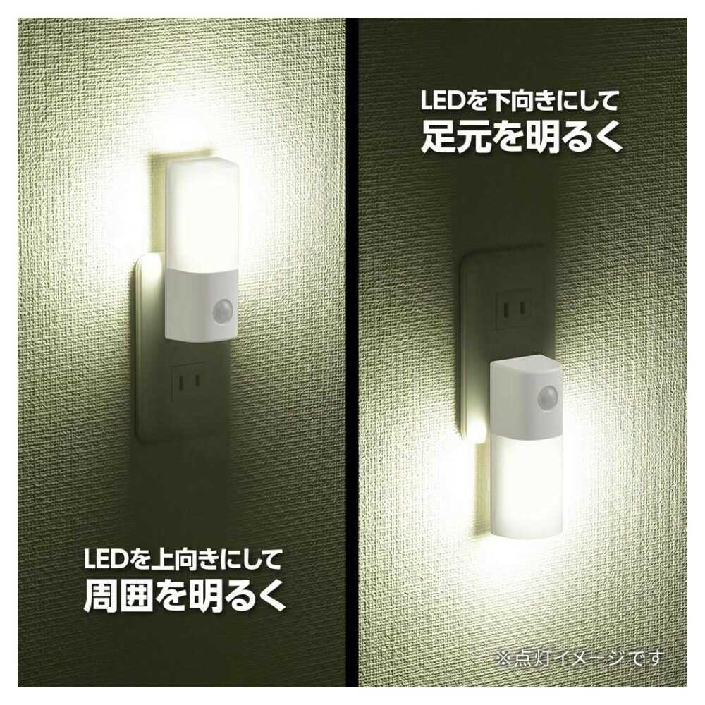 ● 暗くなって人が近づくと自動点灯 ● LEDを上向きにして周囲を明るく ● LEDを下向きにして足元を明るく ● 明るさ約65ルーメン ● コンセントに差し込むだけ