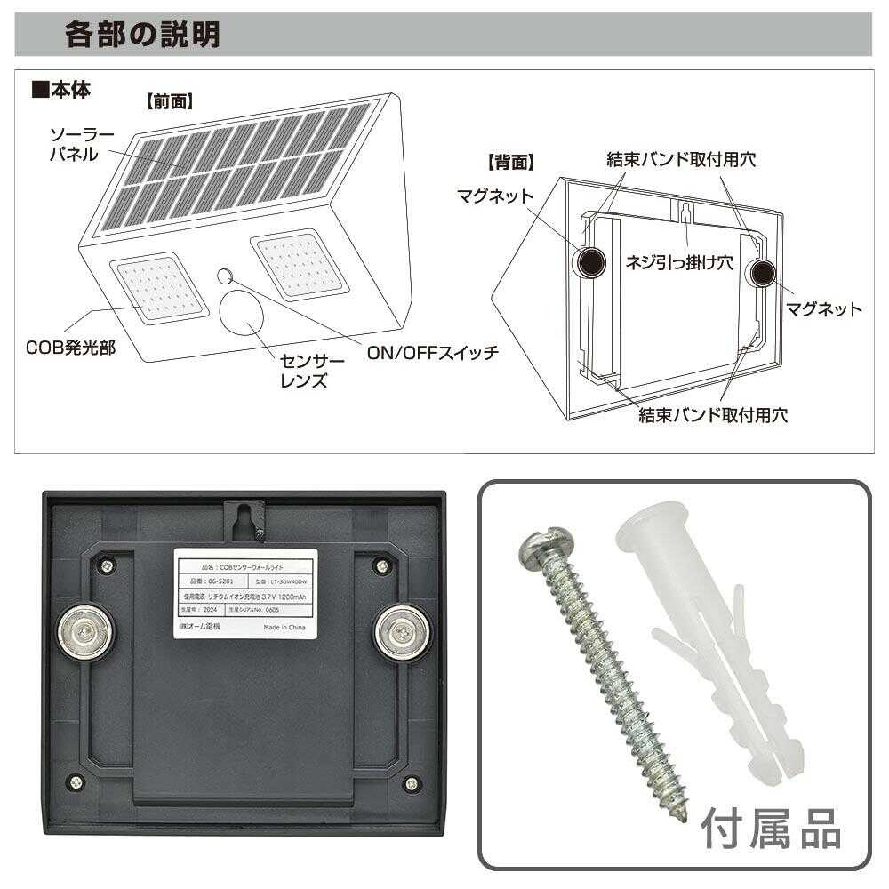 ● 昼は太陽光で充電し、夜は赤外線センサーで人を検知しライトが点灯する、ソーラー発電式人感センサーライト ● 防水性能IP65で雨に濡れる場所で使用できます ● 3種類の取り付け方法 ・ マグネットで鉄板などに ・ 付属のネジとスリーブで木の壁やコンクリート壁へ ・ 市販の結束バンドで柵やフェンスなどに ● 明るさ400ルーメン