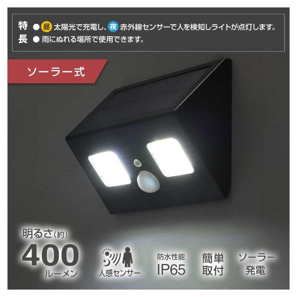 太陽光で充電、夜は赤外線センサー、人を検知しライトが点灯、ソーラー発電式人感センサーライト、防水性能IP65、3種類取り付け方法、マグネット、鉄板、木の壁、コンクリート壁、柵、フェンス、明るさ400ルーメン