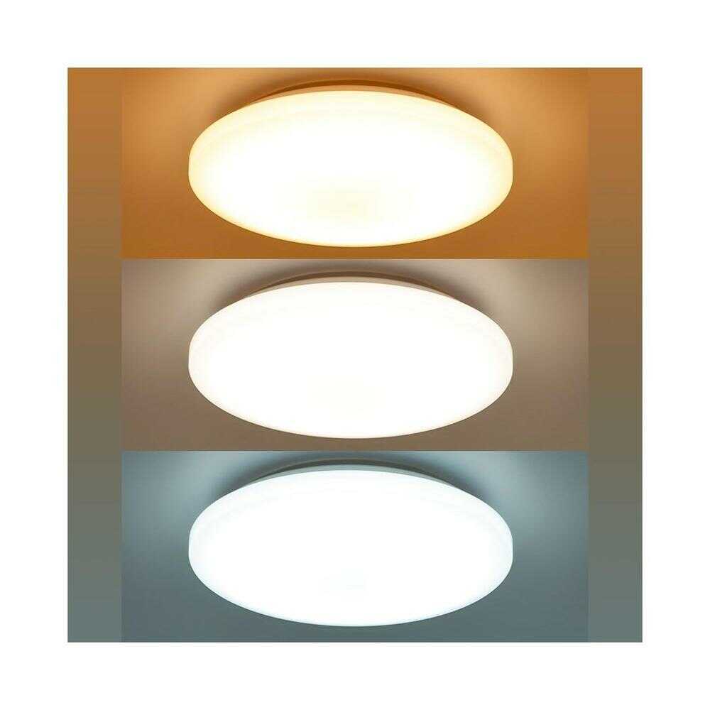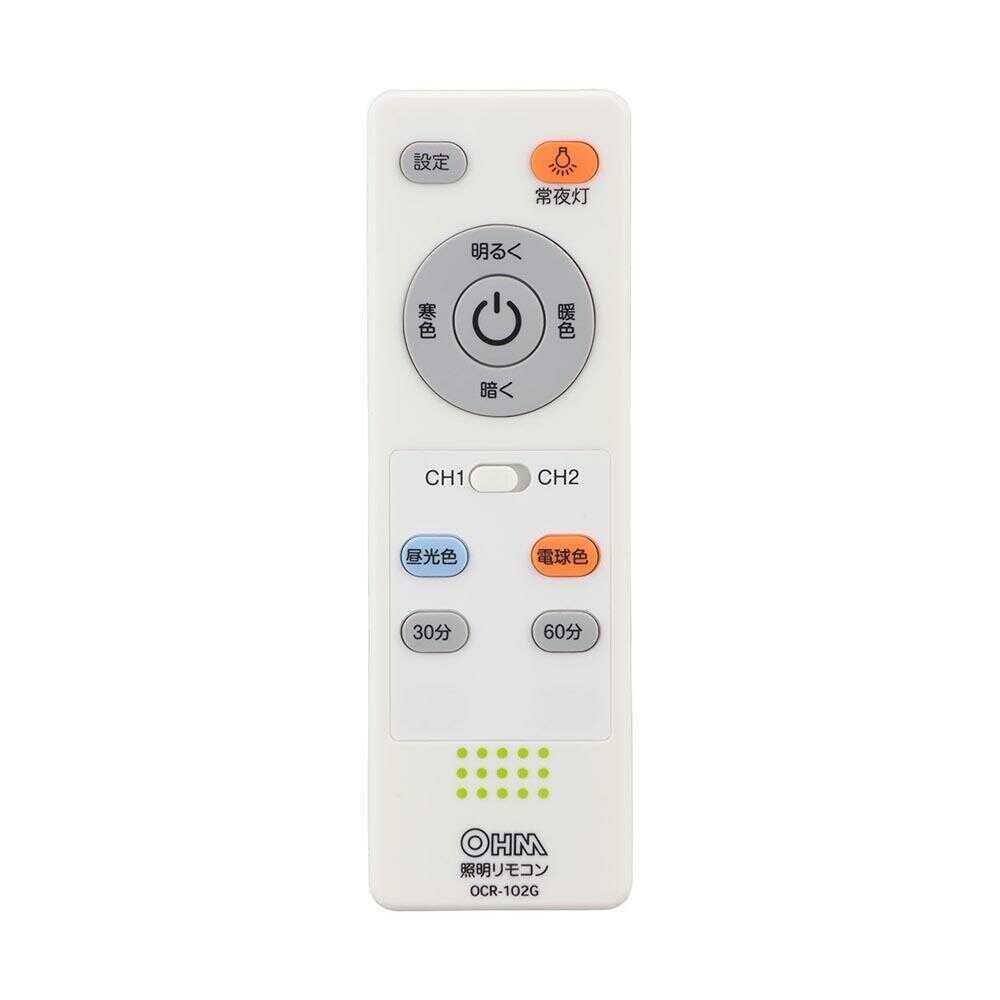 ● 直径45cmのLEDシーリングライト ● 全光束は最大5000ルーメン ● 調光10段階(100%~10%)、調色11段階機能付き ● 色温度範囲は電球色~昼光色相当 ● 30分・60分オフタイマー付き ● 電源、調光、調色、タイマー、チャンネル、常夜灯が操作できるリモコン付き ● 調光調色は壁スイッチでも設定可能 ● 消費電力45W(100%点灯時)で省エネ ● 適用畳数は~12畳