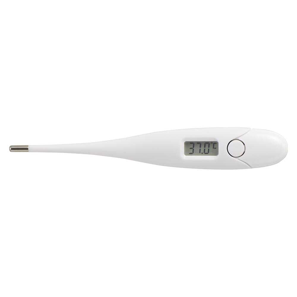 ● 約15秒ですばやく予測検温 ● 予測検温終了後も検温を続けると実測検温になります ● 検温終了時、予測・実測検温ともに電子音(ピー音)でお知らせ ● 測定結果が37.8度以上の場合、予測・実測検温ともにブザーのリズムを変えてお知らせ ● 製品本体は抗菌剤入りの合成樹脂を使用 ● 電源の切り忘れにも安心のオートパワーオフ式 ● 測定精度は±0.1度 ● わきの下・口中で測定できます ● 電池交換可 ● 収納ケース付き