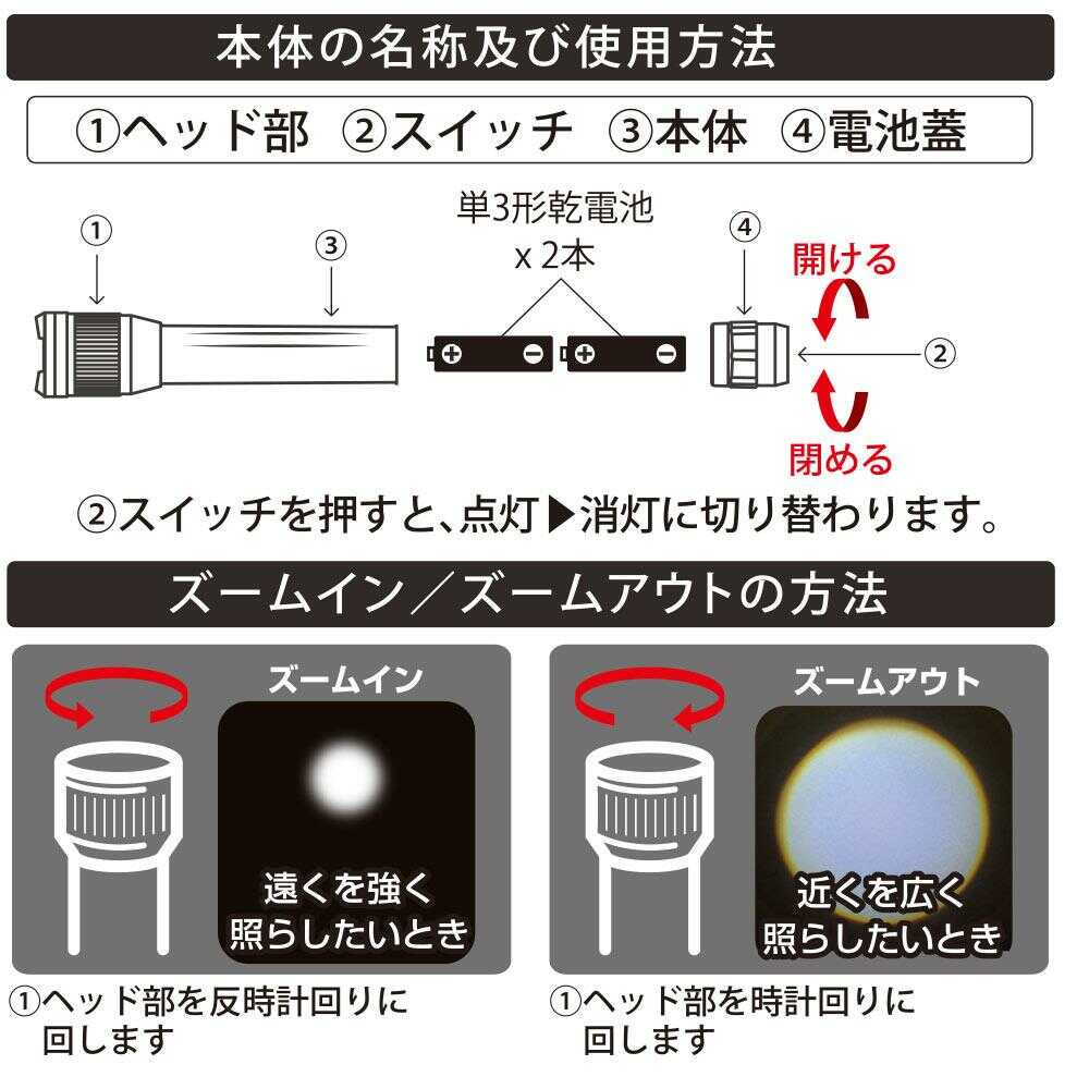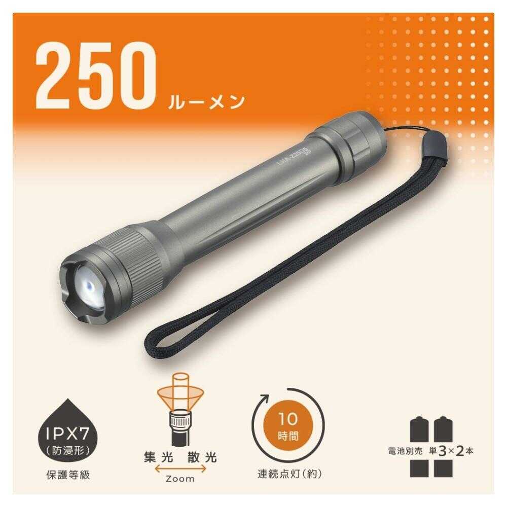 懐中電灯、IPX7、防浸形、Zoom、集光、散光、連続点灯10時間
