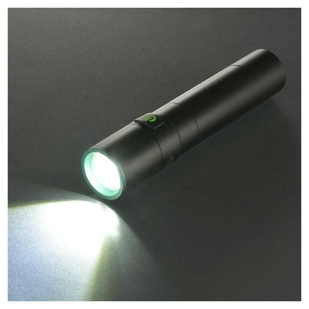 ズーム機能搭載、明るさ調整機能付き、USB-C充電式、明るさ420ルーメン、連続点灯約11時間、保護等級 IPX4、防雨形