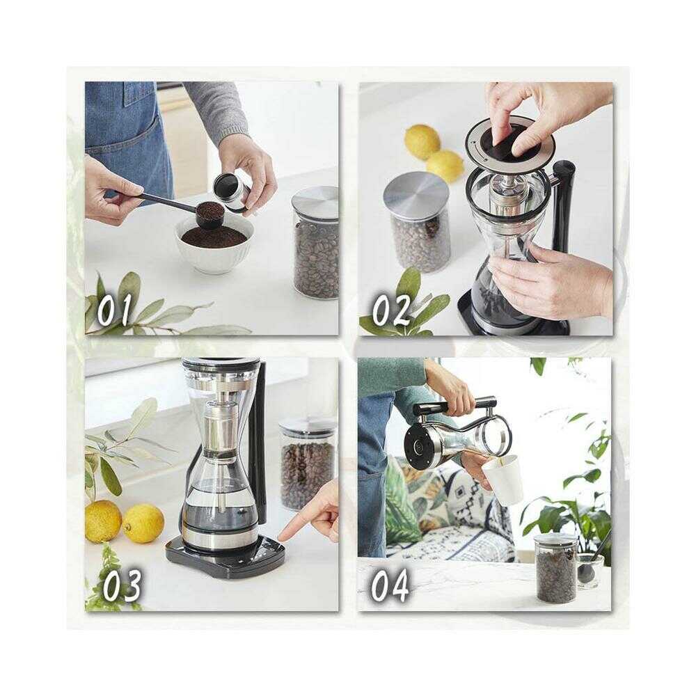 ● 本格的なコーヒーが楽しめるサイフォン式 ● 最大でカップ2杯までのコーヒーが作れます(1杯を120ml とした場合) ● 1分/2分/3分からお好みの抽出時間が選択できます ● 抽出完了後は自動で30分保温されます