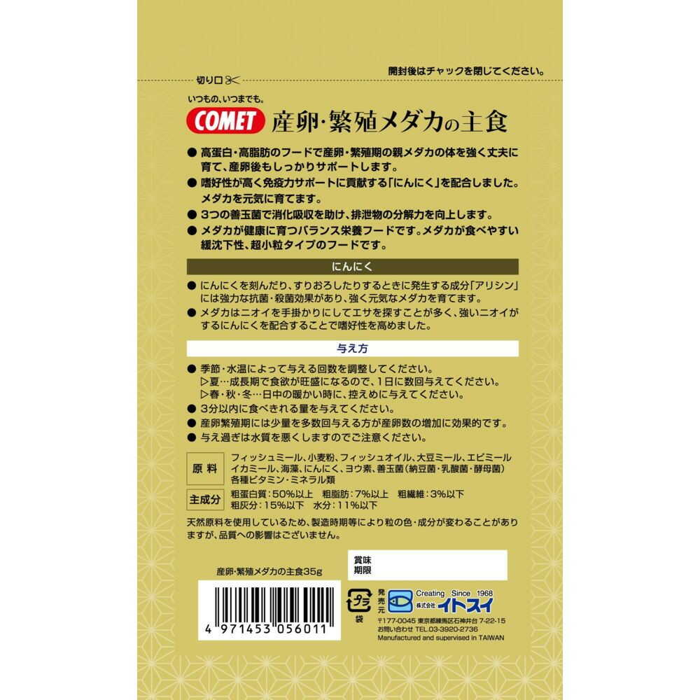 にんにくパウダー配合で嗜好性アップ、抗菌、殺菌効果により強く元気なメダカの育成し、3つの善玉菌で消化吸収を助け、排泄物の分解力を向上します。