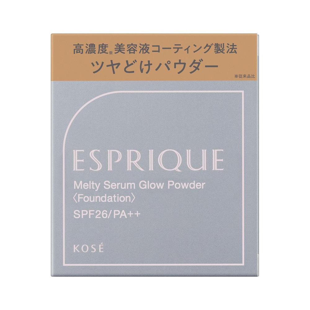 高濃度※美容液でコーティング、粉感なく肌に溶け込みフィットするパウダーファンデーション。 ツヤどけパウダー。 ※従来品比 SPF26・PA++ ■ リキッドファンデーションとフェイスパウダーで仕上げたような理想のツヤ肌を実現。肌と一体化するようなとけこみ感と高い均一性で、毛穴を隠しながらツヤを仕込み、美しい仕上がりを叶えるパウダーファンデーション。 ■ エスプリーク史上初、高濃度※美容液でコーティング。美容液で一粒一粒均一に包み込んだ粉体を乾燥させ、きめ細かく整え、新規プレス方法で時間をかけてプレスするコーセー史上最多工程の新製法。しっとりなめらかな肌どけタッチ・上品なツヤ・きめ細かく均一な薄膜で、自然なカバー力を叶えます。 ■ 弾力と透明性をもつ「セラムタッチパウダー」 配合。とけこみ感触で、凹凸に沿うように均一に密着するため、厚塗り感なく毛穴を自然に隠します。 ■ 仕上がりも使用感も粉感がなく、しっとりとしたツヤ肌に仕上げます。