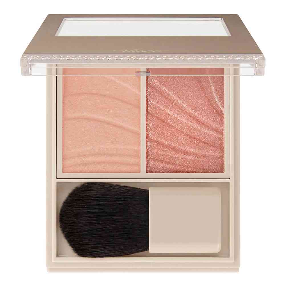 ベースで頬を整えて色を重ね、花びらのような血色感×立体ツヤを生み出す。 マットベースとパールカラーの2質感チークカラー。