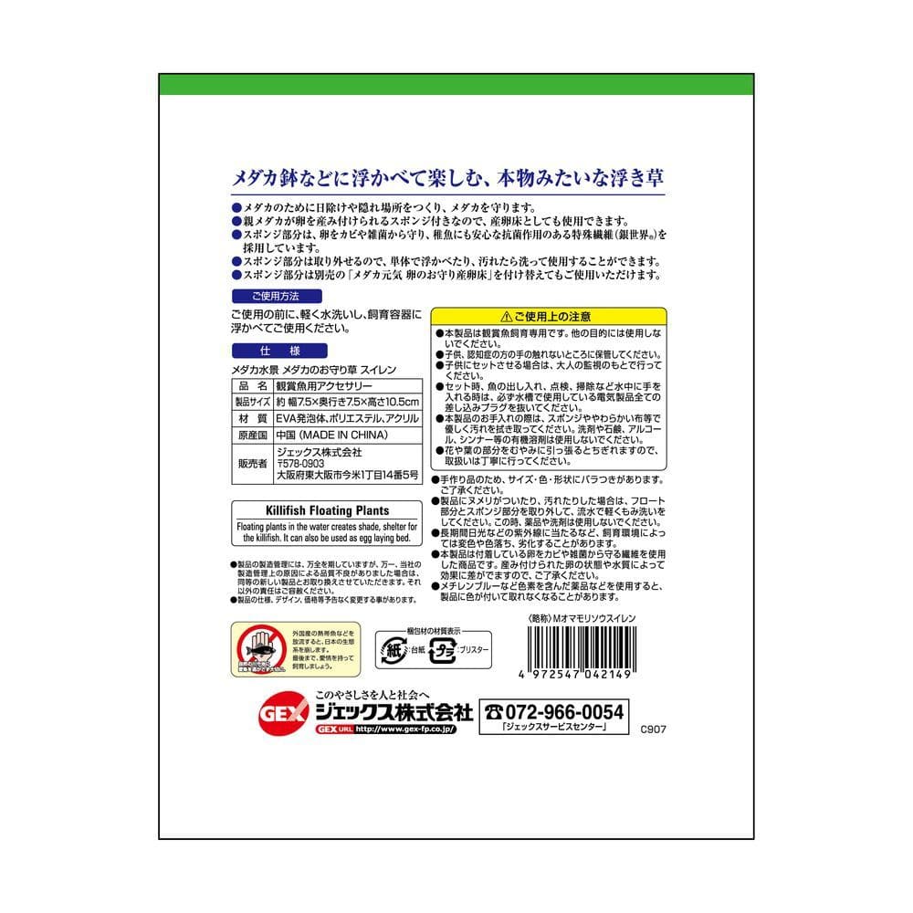 ●葉の部分をむやみに引っ張るとちぎれますので、取扱いは丁寧に行ってください。●製品にヌメリがついたり、汚れたりした場合は、フロート部分とスポンジ部分を取り外して、流水で軽くもみ洗いをしてください。この時、薬品や洗剤は使用しないでください。●メチレンブルーなど色素を含んだ薬品などを使用すると、製品に色が付いて取れなくなることがあります。