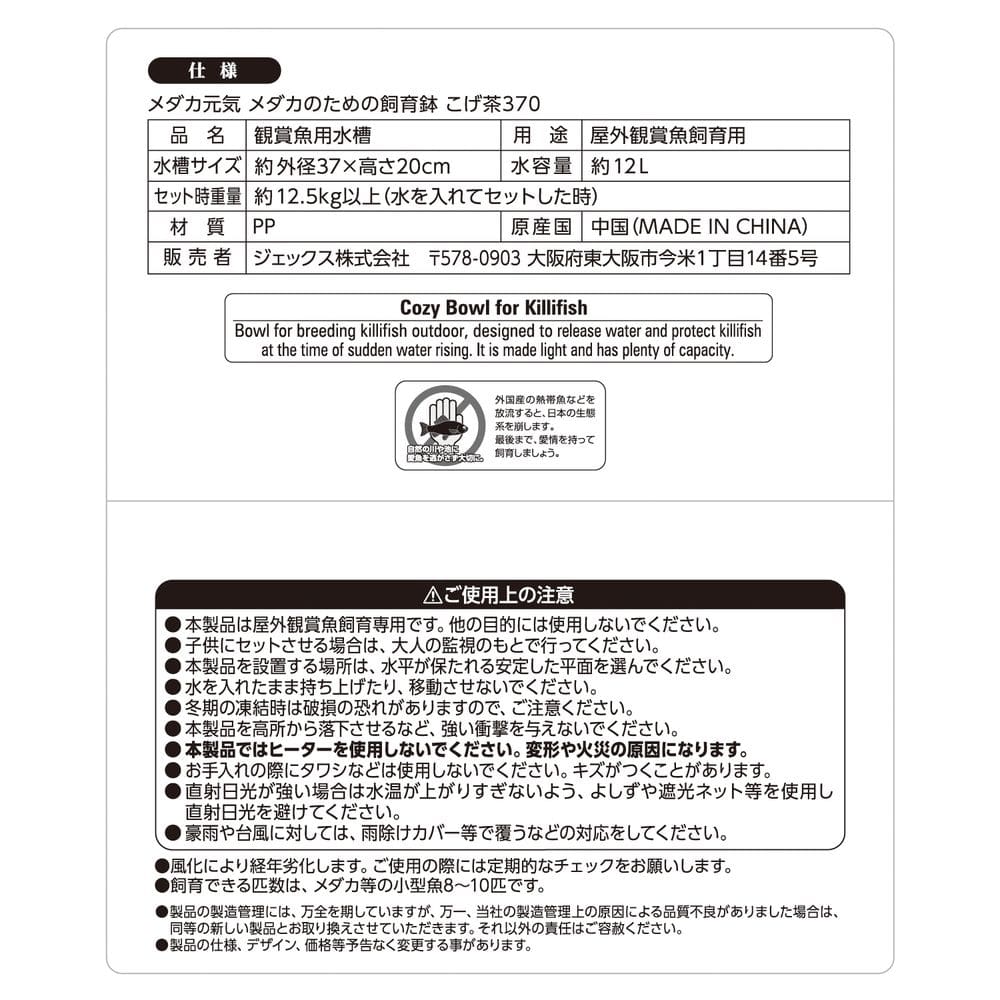 ●本製品は屋外観賞魚飼育専用です。他の目的には使用しないでください。●子供にセットさせる場合は、大人の監視のもとで行ってください。●本製品を設置する場所は、水平が保たれる安定した平面を選んでください。●水を入れたまま持ち上げたり、移動させないでください。●冬期の凍結時は破損の恐れがありますので、ご注意ください。●本製品を高所から落下させるなど、強い衝撃を与えないでください。●本製品ではヒーターを使用しないでください。変形や火災の原因になります。●お手入れの際にタワシなどは使用しないでください。キズがつくことがあります。●直射日光が強い場合は水温が上がりすぎないよう、よしずや遮光ネット等を使用し直射日光を避けてください。●豪雨や台風に対しては、雨除けカバー等で覆うなどの対応をしてください。