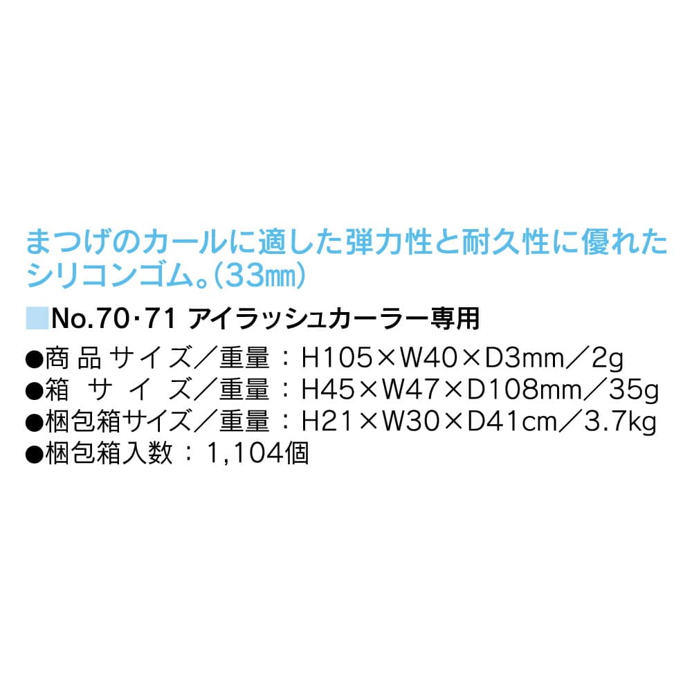 まつげのカールに適した弾力性と耐久性に優れたシリコンゴム。33mm