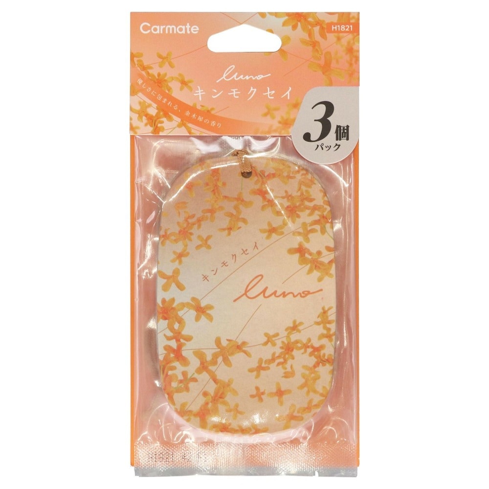 金木犀 キンモクセイ 芳香剤 車 吊り下げ カーメイト H1821 ルーノ ハンギング キンモクセイ luno いい香り おしゃれ 3枚入り 吊り下げタイプ 消臭剤 配合 芳香消臭 優しさに包まれる 金木犀の香り 車用芳香剤 フレグランス