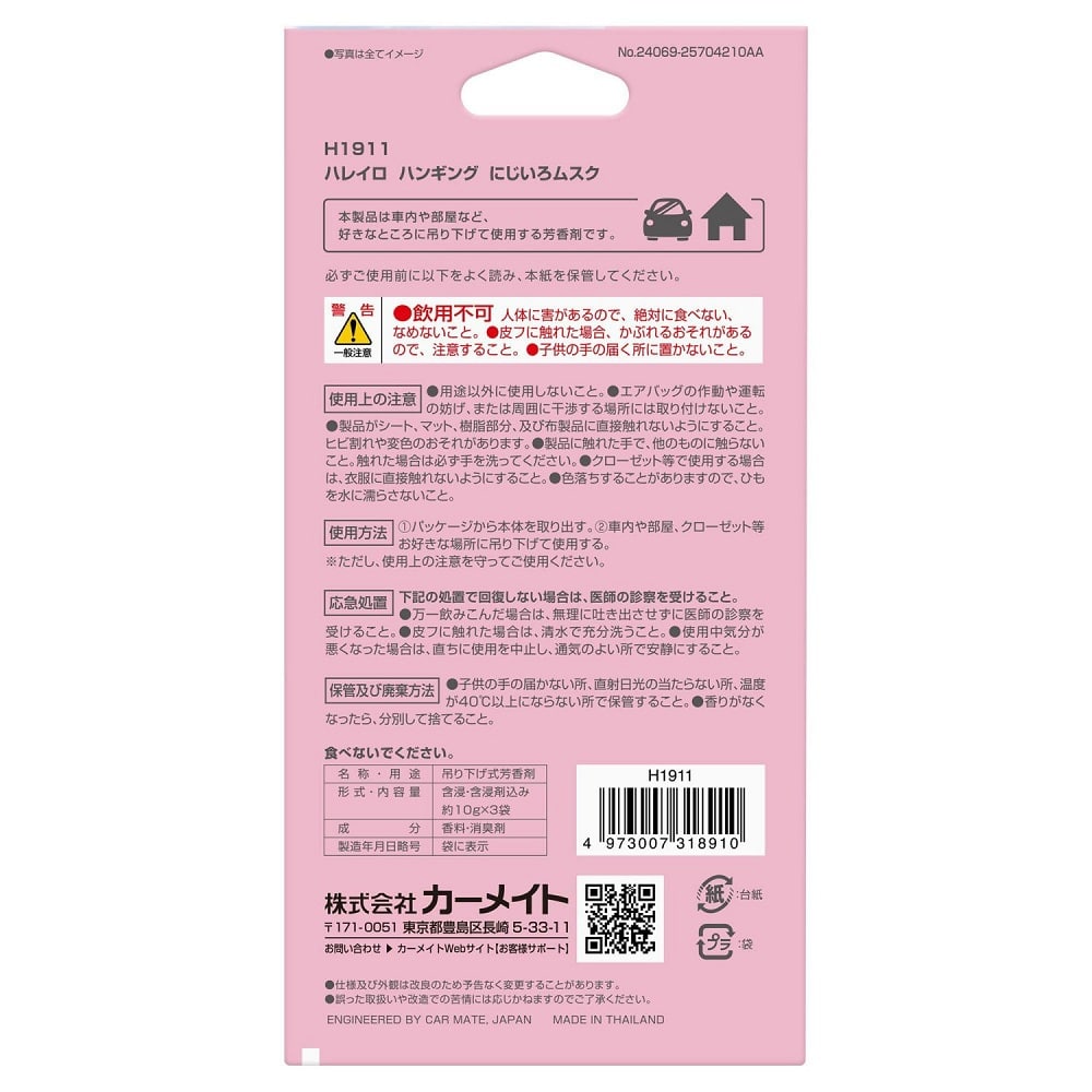 車 芳香剤 ムスク カーメイト H1911 ハレイロ ハンギング にじいろ ムスク 3枚 セット カーフレグランス 吊り下げ 芳香剤 消臭剤 配合