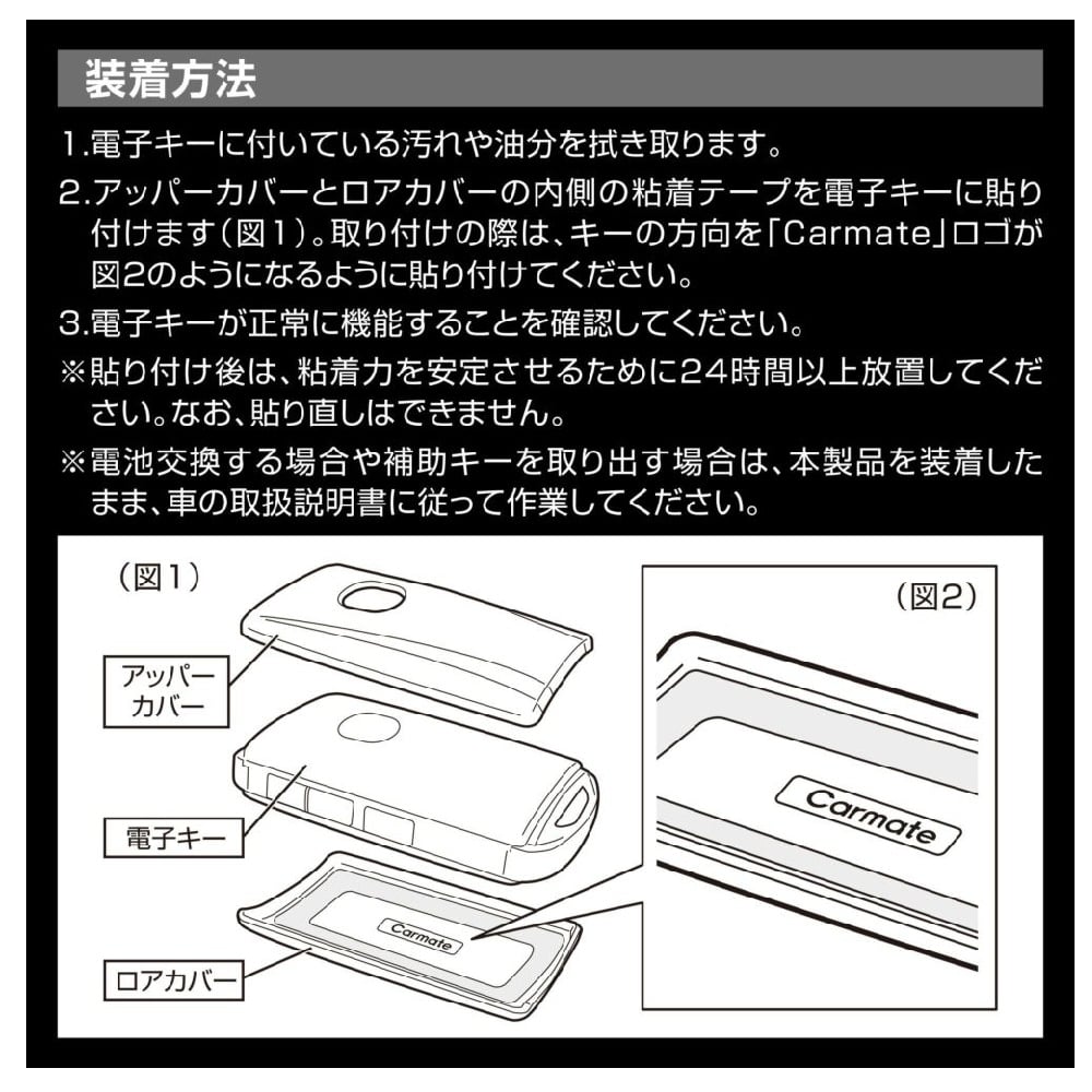 ●お求めいただく前に ・必ず適合する電子キーの形状と適合車種情報をご確認ください。 ・本製品は電子キーの傷・破損を完全に防ぐものではありません。 ・本製品に防水機能はありません。 ・電子キーの電池が消耗している状態では、ドアのロック/アンロックができない場合があります。その場合は、本製品から電子キーを取り外し、車の取扱説明書に従って操作してください。 ・本製品を装着すると、使用条件によっては電子キーの作動範囲が狭くなる場合があります。