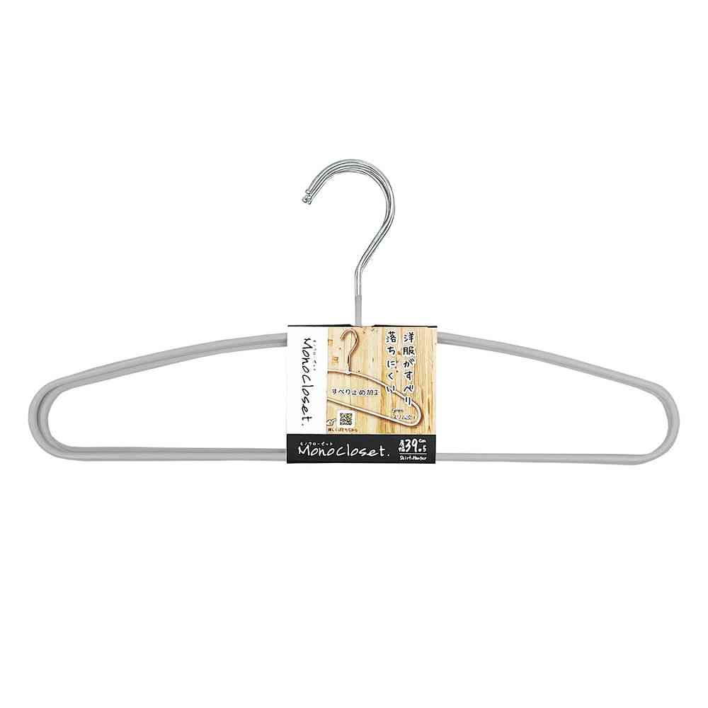 洋服が滑り落ちにくい薄型ハンガー。 本体部分にPVCコーティングを施し洋服のずり落ちを防ぎます。