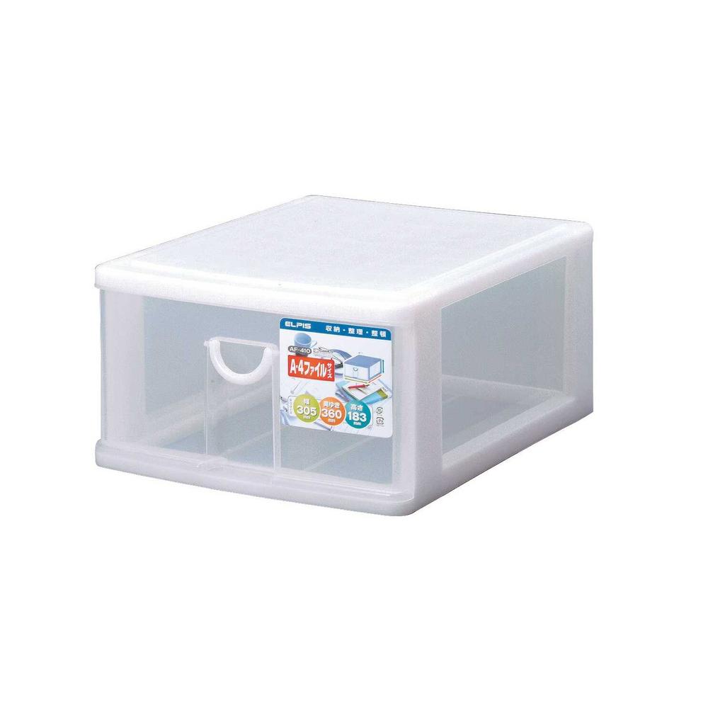 書類整理や小物整理に最適なエルピス AF-410 ホワイト ●A4サイズのファイルやバインダーなどをゆったり収納 ●やや深さがあるので、タオルやハンカチ、下着などの整理ができます ●半透明な引き出しで収納したものがわかりやすい