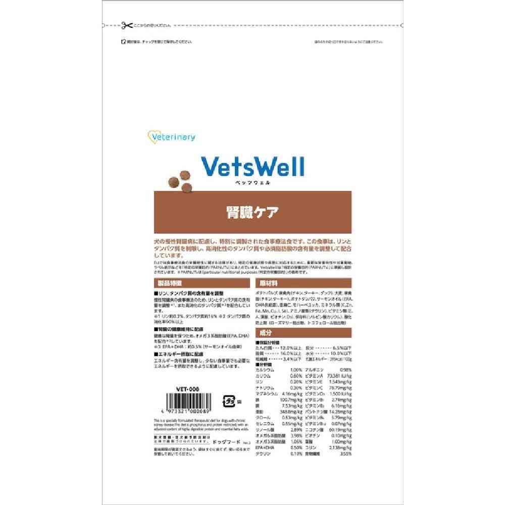 犬の慢性腎臓病に配慮し、リン、タンパク質、必須脂肪酸等を調整した食事療法食