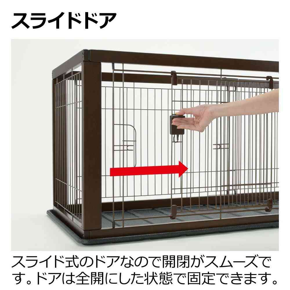 ・ペットの成長やリビングスペースに合わせて伸縮できます。 ・スライド式のドアなので開閉がスムーズです。ドアは全開にした状態で固定することができます。 ・置き場所に合わせてドア位置を変更できます。 ・トレーは取り外して洗えるので、お手入れが簡単です。サイズ調節も上下の凹凸を合わせて、パチンと音がするまで押し込むだけでOKです。 ・サイドに窓が付いているので、トイレやフードの取り替えに便利です。設置場所によってはペットの出入り口としても使えます。 ・付属品:ペット用スライドワイドトレー ・適応体重:4~20kg ・適応種:超小型犬~中型犬