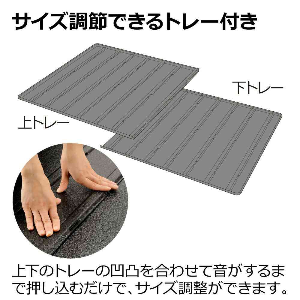 外寸:90~154×79×70.5Hcm トレーセット時:94~158×81.5×71Hcm 内寸:86~150×68.5cm 扉間口:27×57cm 側面間口:70.5×27.5cm 調節可能幅:90~154cm(11段階) 製品重量:19.6kg
