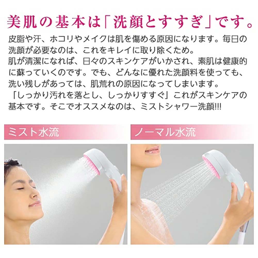●2つの水流に切替えができる、洗顔にぴったりなシャワーヘッドです。 ●「ミスト水流」は洗顔に適した直径約1mm×24穴のスクリュー構造で起きるミスト水流の微粒子が、汚れをしっかり洗い流します。 ●「ミスト水流」は手洗いの約半分の水圧(※1)が肌への刺激を抑え、通常のシャワーより水温(※2)が3度下がり、洗顔に適した人肌温度で乾燥を防ぎます。 ●「ノーマル水流」は洗髪やボディ洗いに適した直径約0.5mm107穴の水流が、なめらかな肌あたりです。 ●流しっぱなしを防ぐストップボタン付きで、ノーマル水流では約45%、ミスト水流では約70%の節水効果が得られます。 ●取り付けは手でくるっと回すだけ、付属アダプター入りで、ほとんどのメーカーのホースに対応します。 ●手元ストップ機能が付いているので、ちょっと止めたい、節水したい時に便利です。