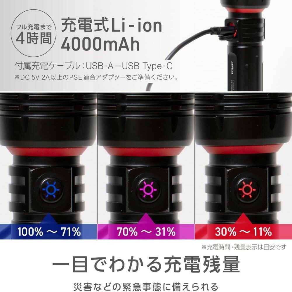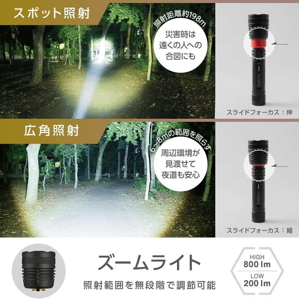 懐中電灯、ライト、防犯、防災、多機能ライト、充電式ライト