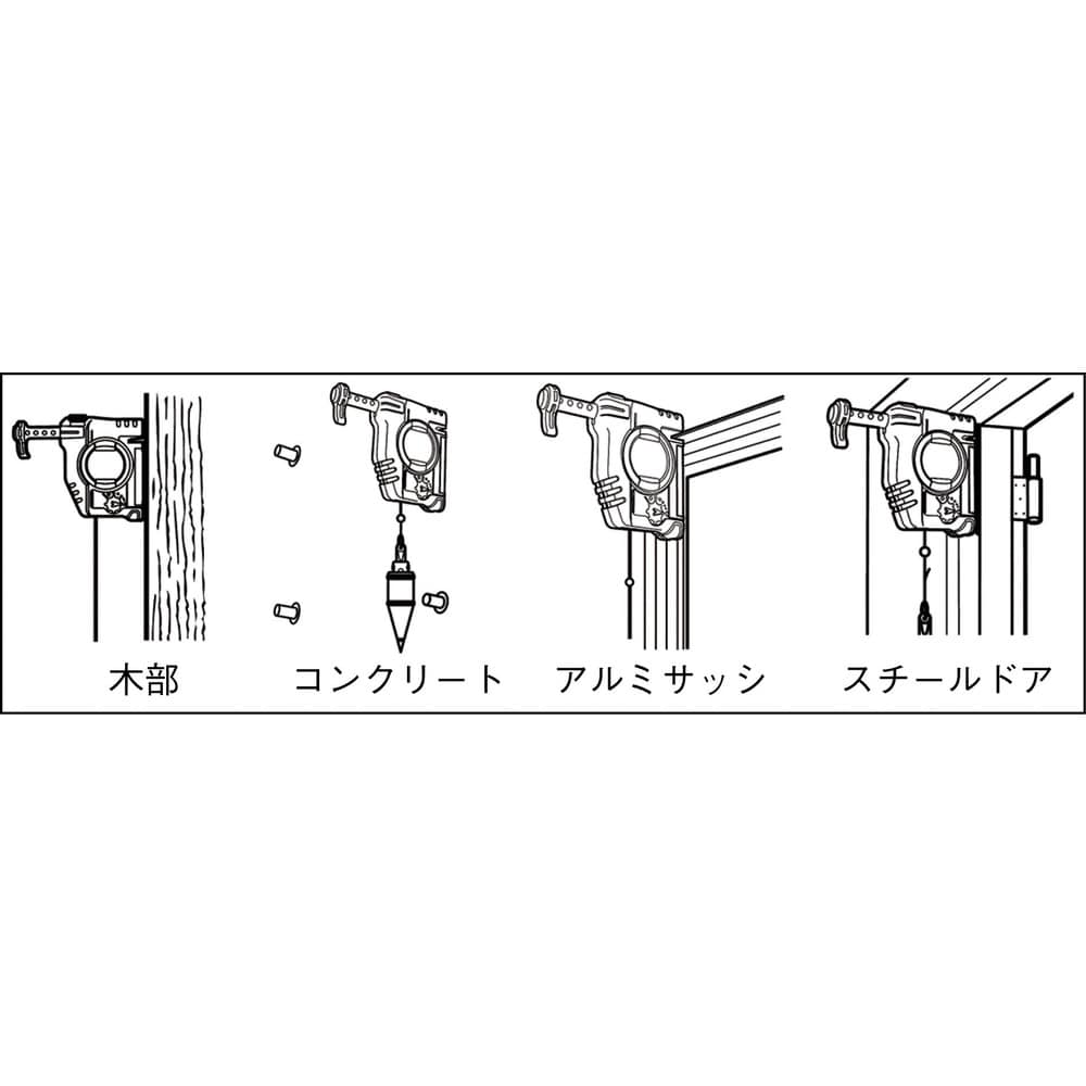 ●自動静止構造で素早く止まる下げ振り「ピーキャッチクイックブラ400」付です。●自動巻取式です。●木部、鉄部、アルミサッシ、コンクリートに取付可能です。●超強力磁石を採用しています(磁束密度130mT)。●ケースはABS樹脂とエラストマー樹脂の一体成型で滑りにくいです。●針の飛び出しを防止する針ロック機構を搭載しています。●見やすい蛍光黄色糸を採用しています。●色:黄●糸長さ(m):4.5●適合下げ振り重量(g):100~1000 質量658g