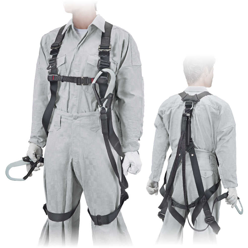 ●フルハーネス型用 タイプ1です。●束縛感の少ないY型構造を採用したエントリーハーネスです。●伸縮するので邪魔にならない蛇腹式ランヤードロープです。●L2硬質焼入ゲートスチールフックです。●サイズ:L●色:黒●腿バックル:パススルー●ベルト幅(mm):46●フック口開き(mm):55●最大使用可能質量(kg):100●ランヤード寸法幅(mm):16.5●ランヤード寸法長さ(mm):1500●胸ベルト幅(mm):26●ランヤード幅(mm):16.5●長さ(mm):1500●厚生労働省「墜落制止用器具の規格」適合品●種類:フルハーネス型●ランヤード種別:タイプ1●参考適合身長:175~185cm●ランヤード長:1.5m●最大自由落下距離:2.3m●落下距離:4.1m●ランヤード:平ロープダブル●背中ベルト:Y型 質量2380g