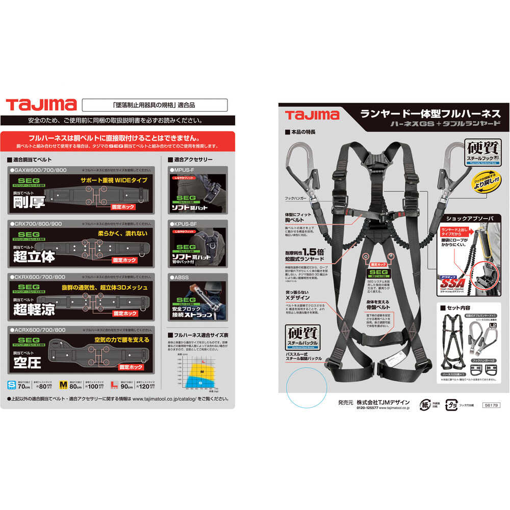 ●墜落制止用器具(安全帯)及び墜落制止用器具(安全帯)関連具は消耗品であり、使用しているうちに摩耗等により性能が低下しますので適切な時期に交換してください。●ご使用前に取扱説明書を必ずお読みください。●製品仕様は予告なく変更する場合がございます。●予めご了承ください。