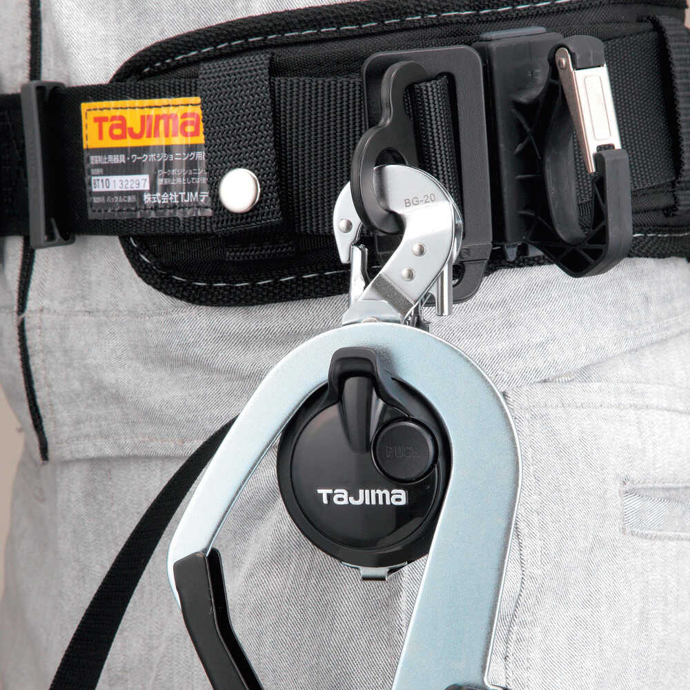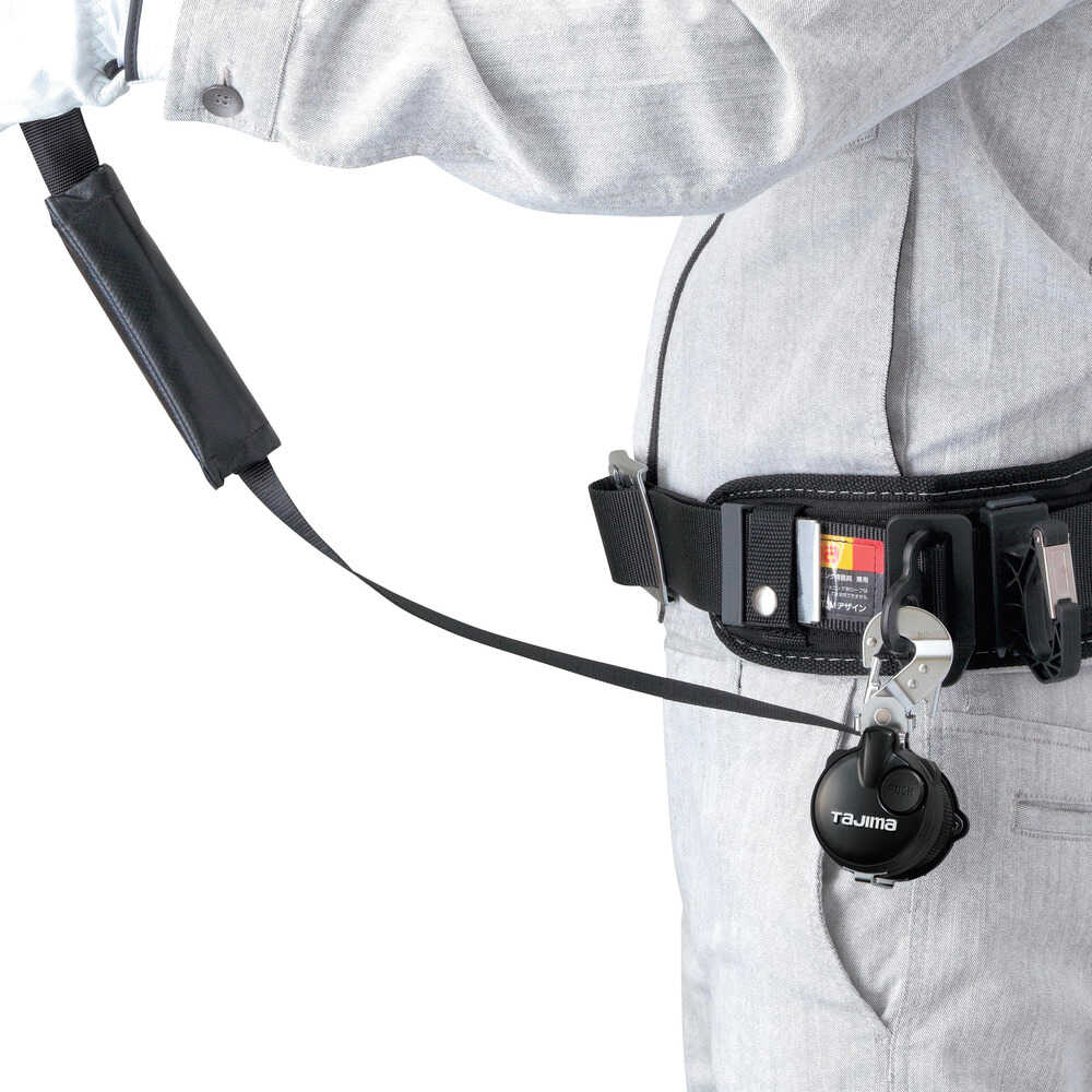 ●ベルト装着スペースわずか4cm(D環止め(2穴)使用時)です。●邪魔にならない小型巻取器(直径57mm)です。●ちょい掛けフックホルダーを採用しています。●色:黒●フック口開き(mm)人体側:9●フック口開き(mm)構造物側:55●フックタイプ:L1(高耐久スチール)●最大使用可能質量(kg):100●長さ(mm):1100●フック:L1(高耐久スチール)●ランヤード寸法幅(mm):16.5●ランヤード寸法長さ(mm):1100●種類:胴ベルト型●ロック装置:なし●ショックアブソーバ 種別:第一種(4kN)●落下距離(m):2.7●最大自由落下距離(m):1.8●種類:胴ベルト型●ロック装置:なし●ショックアブソーバ 種別:第一種(4kN)●最大自由落下距離:1.8m●落下距離:2.7m 質量730g
