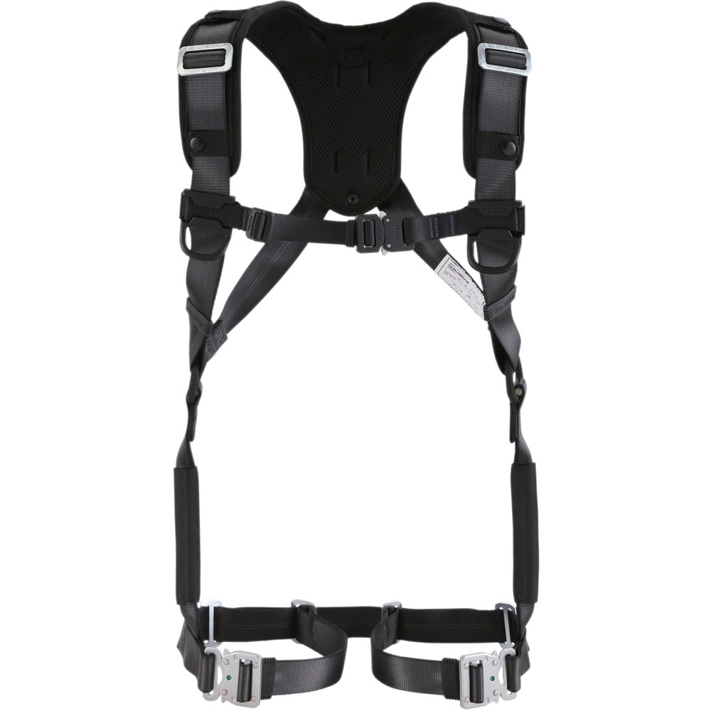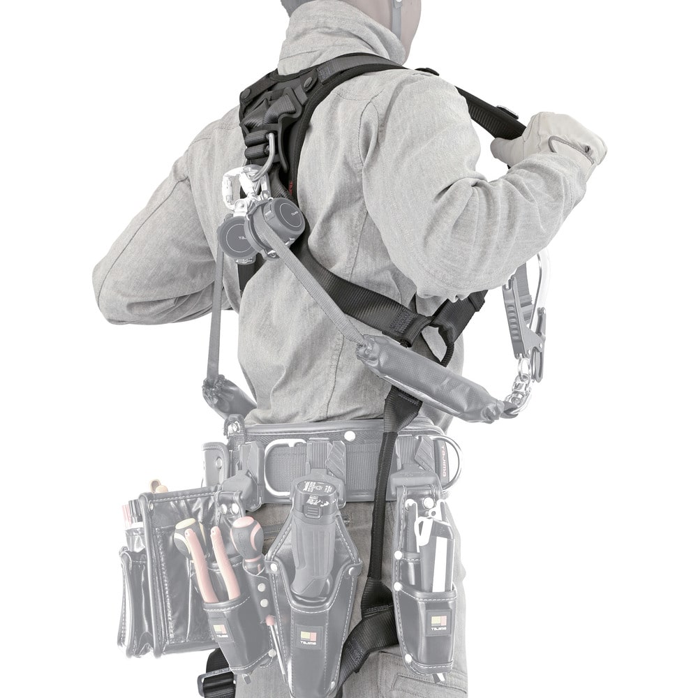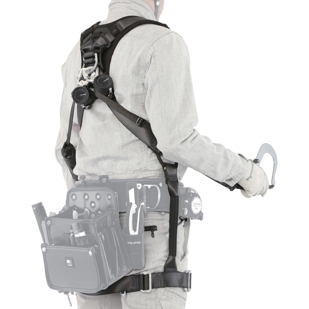 ●装着性と価格バランスに優れたスタンダードモデル●腰道具を付けたまま脱ぎ着ができます。ハーネスを使う時に胴ベルトを外す必要がありません。●高耐久スチールワンタッチバックル仕様です。●形が崩れず脱ぎ着しやすい肩・背中パッドを標準装備です。●スマートパス構造:腰道具の上を通るベルトが細幅仕様になっているので、腰道具の隙間にベルトを逃がすことができます。●調整幅が広いのでどんな体型にもフィットします。●肩・背中パッド付です。●フィット性に優れたソフトクッション採用します。●サイズ:フリーサイズ●色:黒●ベルト幅(mm):41●最大使用可能質量(kg):100●製品重量(g):1350●包装形式:クリアケース●包装寸法(mm)タテ×ヨコ×オクユキ:280×170×155●種類:フルハーネス型●使用可能質量:100kg以下●付属パッド:フィット性に優れたソフトクッション採用 質量1350g