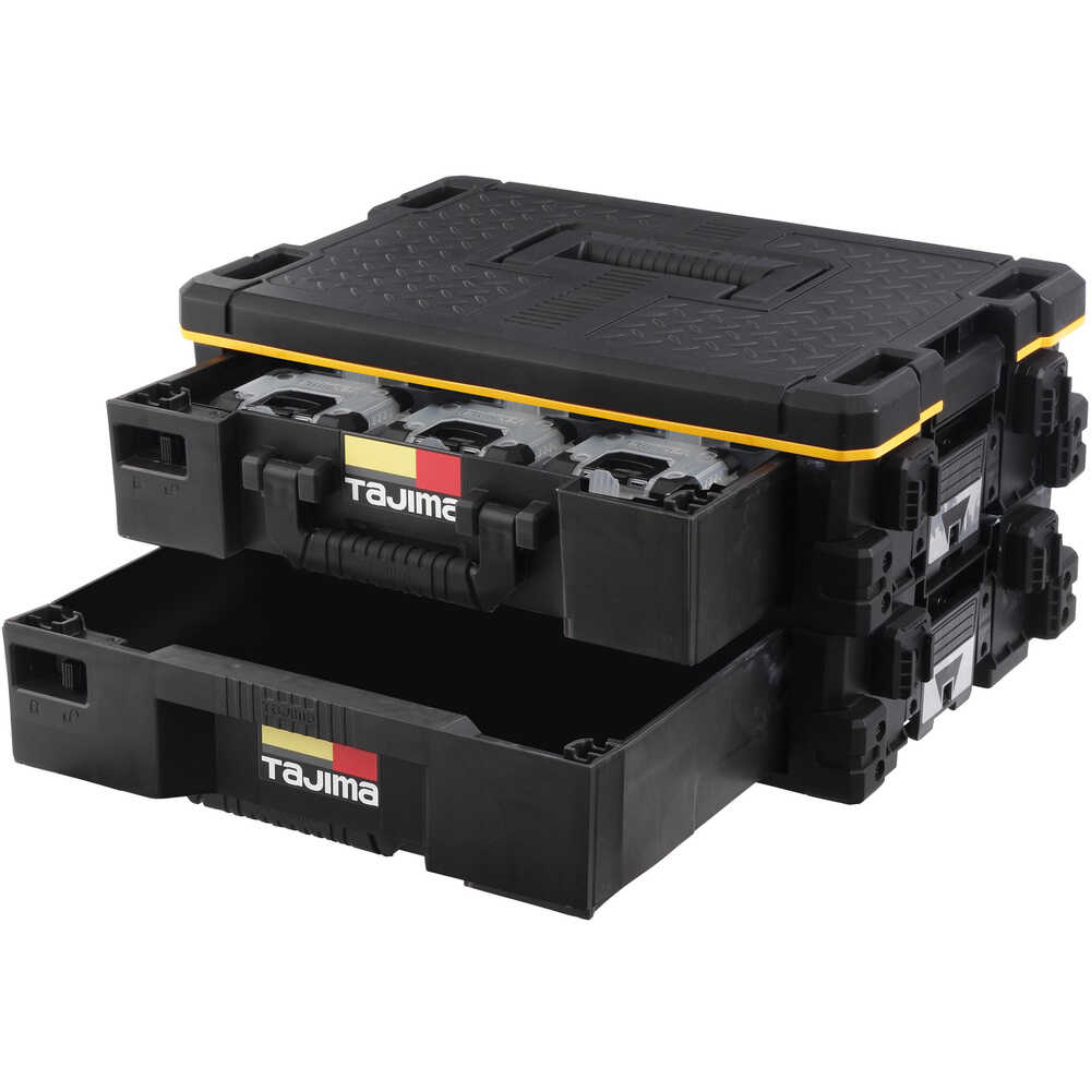 ●セフパーツケーススSサイズ9 個セットトレイ〈TB-PCS9〉とフリートレイ〈TB-HBOXFT〉が上下2 段に収納された引出し型ボックスです。●ボックス外側にセフホルダー(計8個)機能を搭載しています。●重ねて置くだけでしっかり連結する荷崩れ防止仕様です。●フタは乗ったり、座ったりすることが可能な高耐久設計です。 耐荷重100kg●2 段のボックスは分離可能です。●別売の引出しボックス下段を使えばお好みの段数で使用可能です。●色:黒●外形寸法(mm)間口:502●外形寸法(mm)奥行:328●外形寸法(mm)高さ:259●有効内寸(mm)間口:378●有効内寸(mm)奥行:265●有効内寸(mm)高さ:85●耐荷重(kg):100●最大荷重(kg):20●外寸H(mm):259●外寸W(mm):502●外寸D(mm):328mm●内寸H(mm):85●内寸W(mm):378●内寸D(mm):259●最大積載重量:50kg 質量8100g