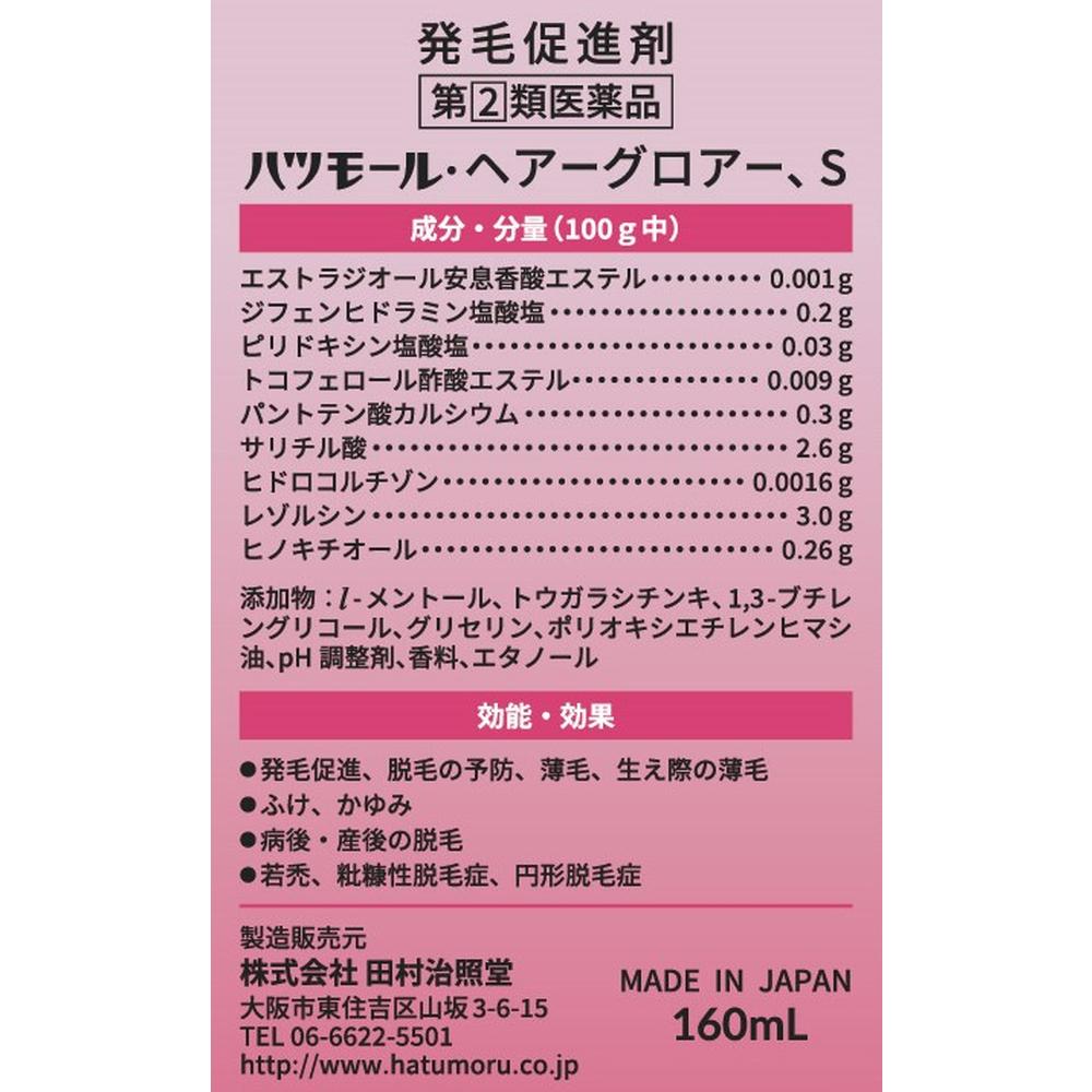 ・薬剤をきちんと地肌に塗布し、よくマッサージして下さい。湯上り直後は発汗しやすいので、ほてりを冷ましてからご使用下さい。 ・頭皮の血行不良を起こすタバコやお酒などは控え、マッサージの他、ぬるめのお風呂にゆっくりつかるなど血行促進に努めましょう。 ・お使いになって何か気になる症状が出た場合は、使用を中止し、医師・薬剤師・登録販売者にご相談下さい。 ・使用前に、よく添付文書をお読みになってからご使用下さい。特に、アレルギー体質の方、皮膚の弱い方は、ご使用前に必ずパッチテスト行って下さい。商品説明女性の薄毛の原因とされる「女性ホルモンの減少」。 女性の脱毛症は男性とは異なり、毛髪自体が細くなり、ハリ・コシ、ボリューム感がなくなるといった薄毛が大半を占めるとされています。 そういった薄毛の根本的原因とされる「女性ホルモンの減少」による「毛髪の寿命の短縮」。 その原因を根本的に改善目的として、エストラジオール安息香酸エステル(女性ホルモン)を医薬品としてOTC市場においては唯一配合し、 その他の8種類の有効成分とともに、短くなった毛髪の寿命(成長期)を正常な状態に戻し、総合的な働きにより、発毛促進をすることによって、女性の毛髪の悩みを改善する、医薬品発毛促進剤となっております。