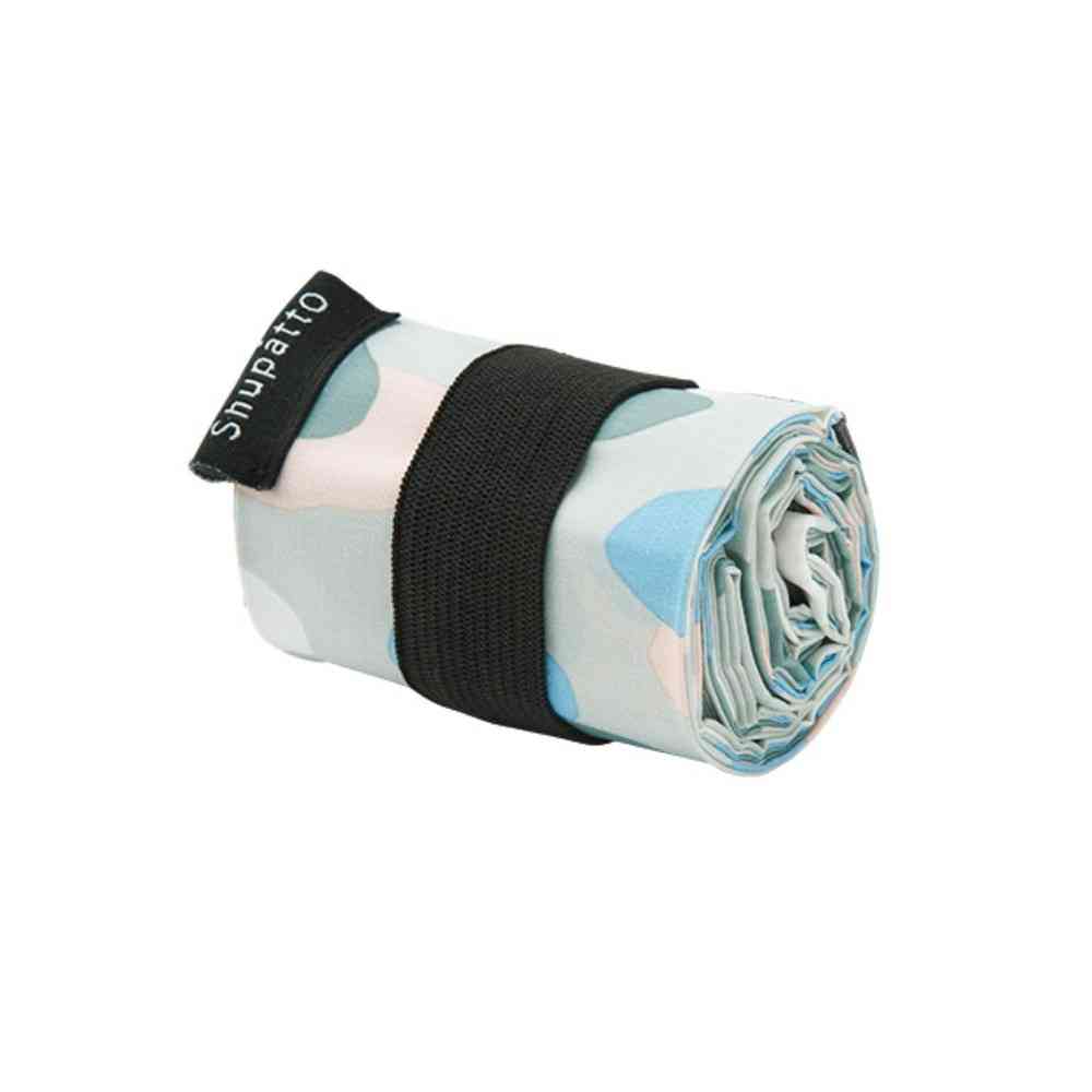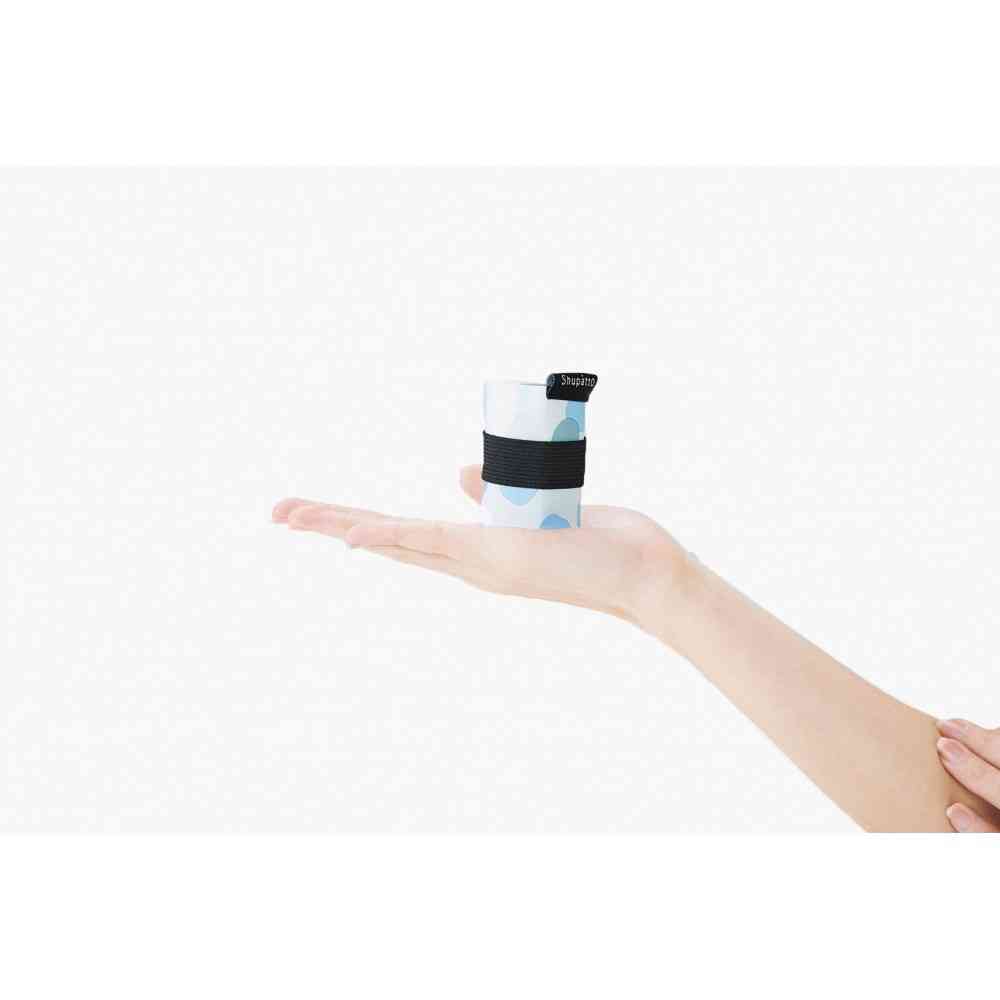 両端を引っ張るだけで一気にたためるバッグ。 たたむとポケットに入る小ささに。 500mLペットボトルが6本入ります。