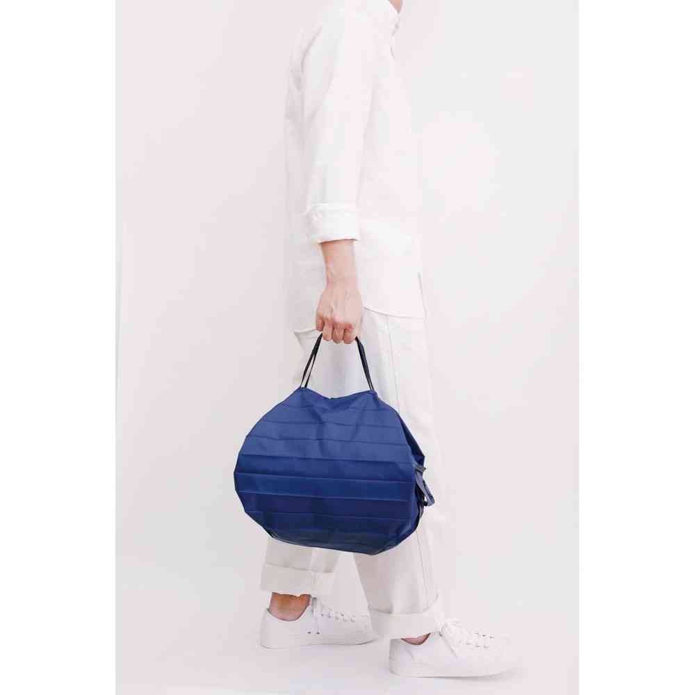 両端を引っ張るだけで一気にたためるバッグ。 Mサイズは、どんなシーンにも使いやすい程よい大きさ。 毎日のお買い物や、荷物が増えたときのサブバッグにおすすめです。