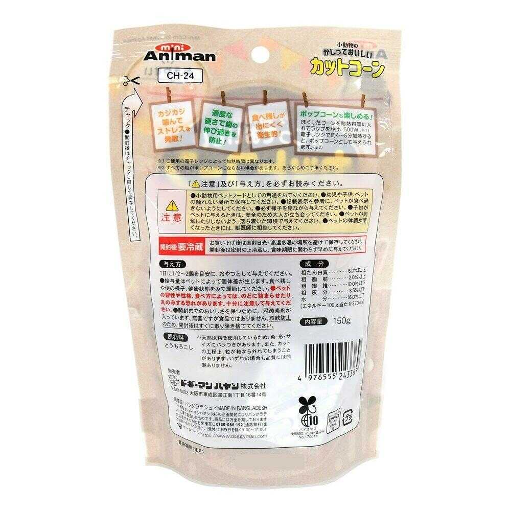 ●おいしく、楽しく、カジカジ噛んで健康を維持!適度な硬さがあり、噛むことでストレス解消&歯の伸び過ぎ防止にも役立ちます。 ●とうもろこしに含まれる食物繊維、ビタミン、ミネラルなどの栄養が摂取できます。 ●ほぐしてレンジでチンするとふくらんで、香ばしいポップコーンが作れます。 ※ご使用の電子レンジによって加熱時間は異なります。 ※すべての粒がポップコーンにならない場合があります。 ●ウサギ、ハムスター、リス、チンチラ、モルモット、オカメインコなどにオススメです。