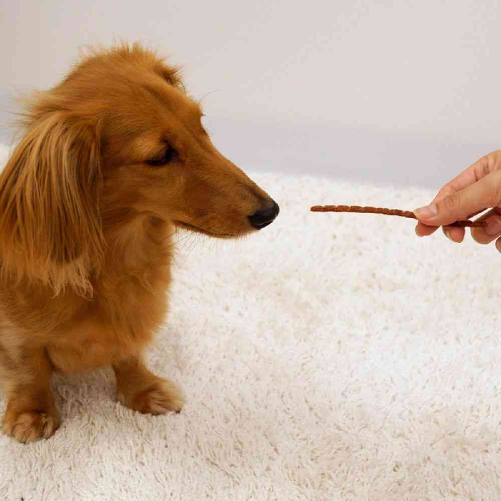 ●目安給与量を参考に1日1~数回に分け、おやつとして与えてください。 【1日の目安給与量】 ・幼犬 超小型成犬(5kg以下):~10本 ・小型成犬(5~11kg):10~20本 ・中型成犬(11~23kg):20~40本 ・大型成犬(23~40kg):40~60本
