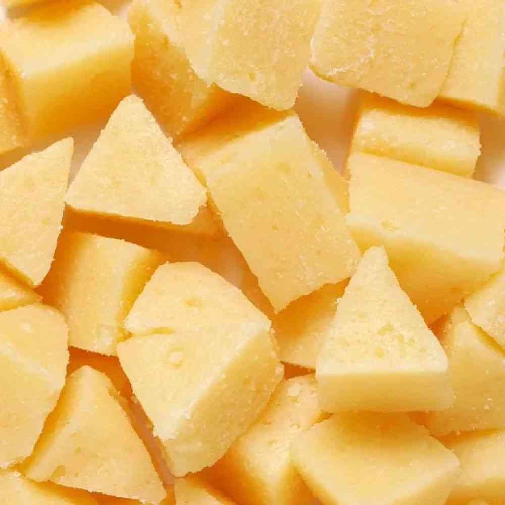 チーズ、でん粉類、小麦粉、ゼラチン、植物油脂、グリセリン、ミネラル類(カルシウム)、プロピレングリコール、増粘多糖類、保存料(ソルビン酸カリウム、デヒドロ酢酸ナトリウム)、酸味料、乳化剤、着色料(β-カロテン、酸化チタン)、酸化防止剤(エリソルビン酸ナトリウム)、香料