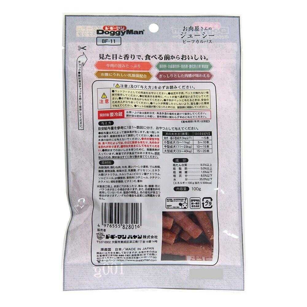 ●まるで炙ったような芳醇な牛肉の香りと旨みたっぷりのスナック。 ●スティック形状で、お肉のうまみがぎっしり詰まっているので、ワンちゃんの食べ応えと食欲をそそる。 ●おなかの健康を整える乳酸菌入り。 ●保存料、合成着色料、発色剤、酸化防止剤不使用。 ●生のようなしっとりとした食感が楽しいおやつお肉屋さんのジューシーシリーズです。 ●2ヶ月未満の幼犬には与えないでください。