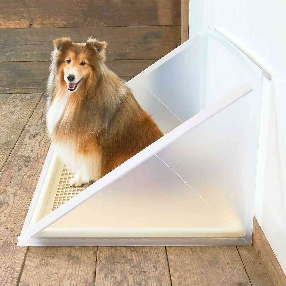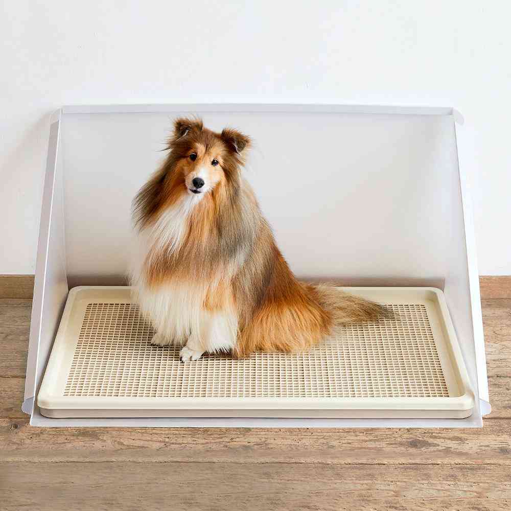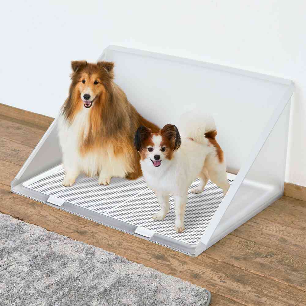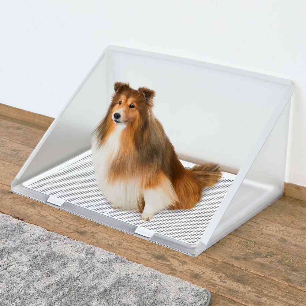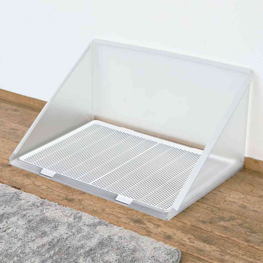トイレ周りの飛散汚れをガード。高い壁ではみ出し防止&目隠し。足をあげるワンちゃんにも最適。さっとたためてお手入れ簡単。
