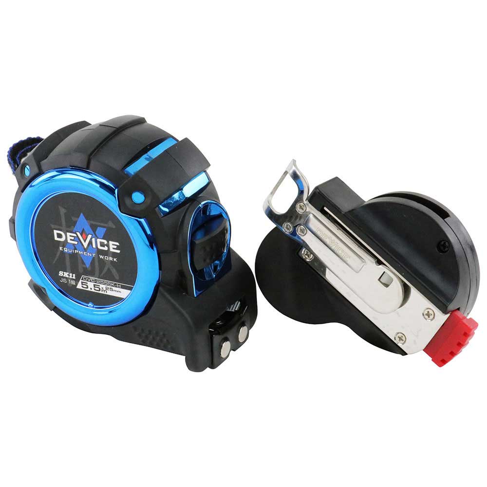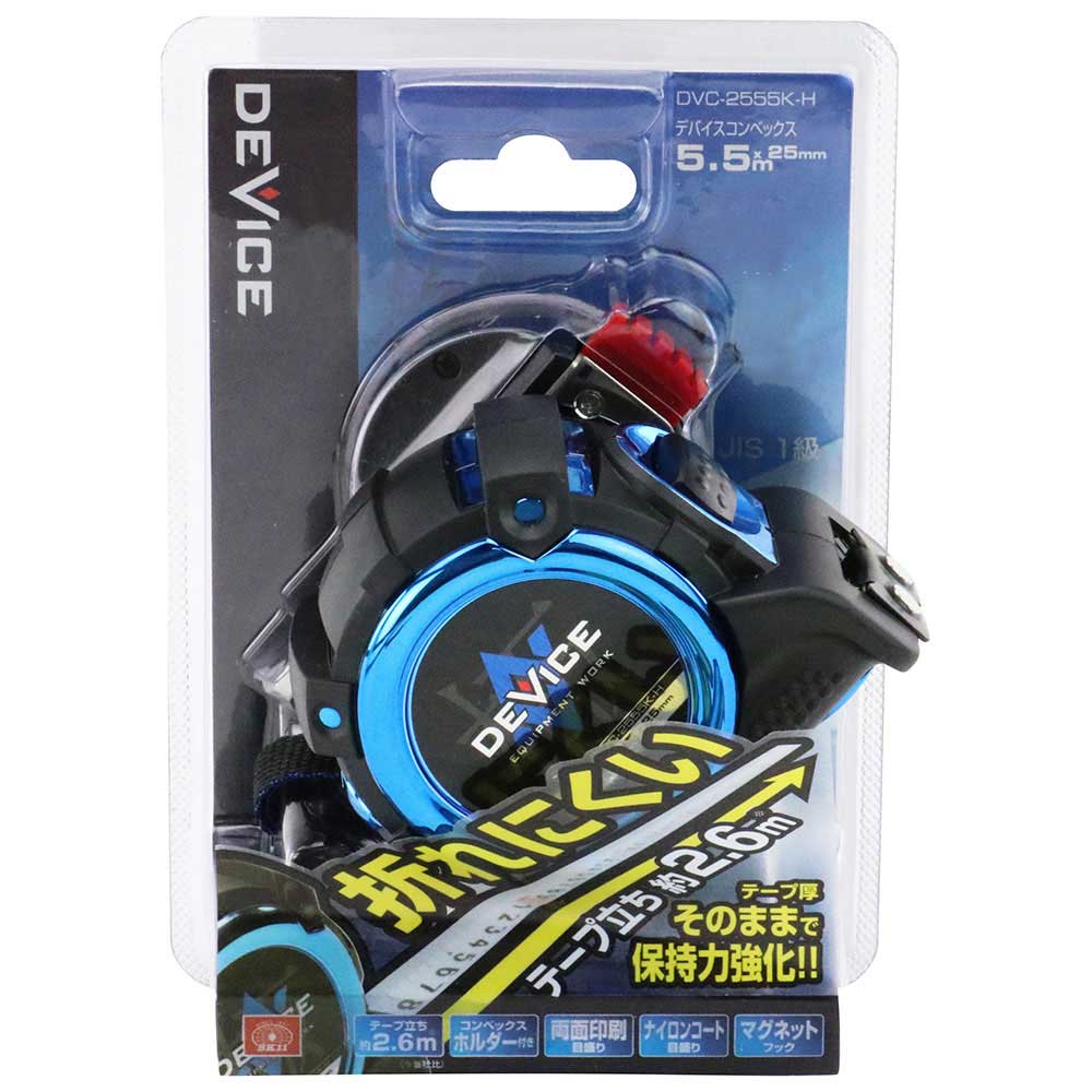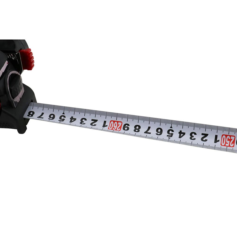 テープ革命、約2.6mのテープ立ちするコンベックスです。 長さの測定。 特殊加工テープにより、水平方向のテープ立ち約2.6mを実現しました。 テープの厚みは通常のテープと同じ為、テープ垂れが少ないです。 JIS1級制度テープで、両面印刷目盛の仕様です。 衝撃に強いゴムジャケット仕様で強力マグネットフックです。 オートストップ機能があり、ロック解除ボタンは、親指、人差し指の2か所の押しやすい位置に配置しています。 ●テープ幅:25mm。 ●テープ長さ:5.5m。 ●テープ精度:JIS1級。 ●テープ目盛:ナイロンコート、両面目盛。 ●フック:マグネット付き。 ●ケース:ゴムジャケットカバー。 ●コンベックスホルダー付。