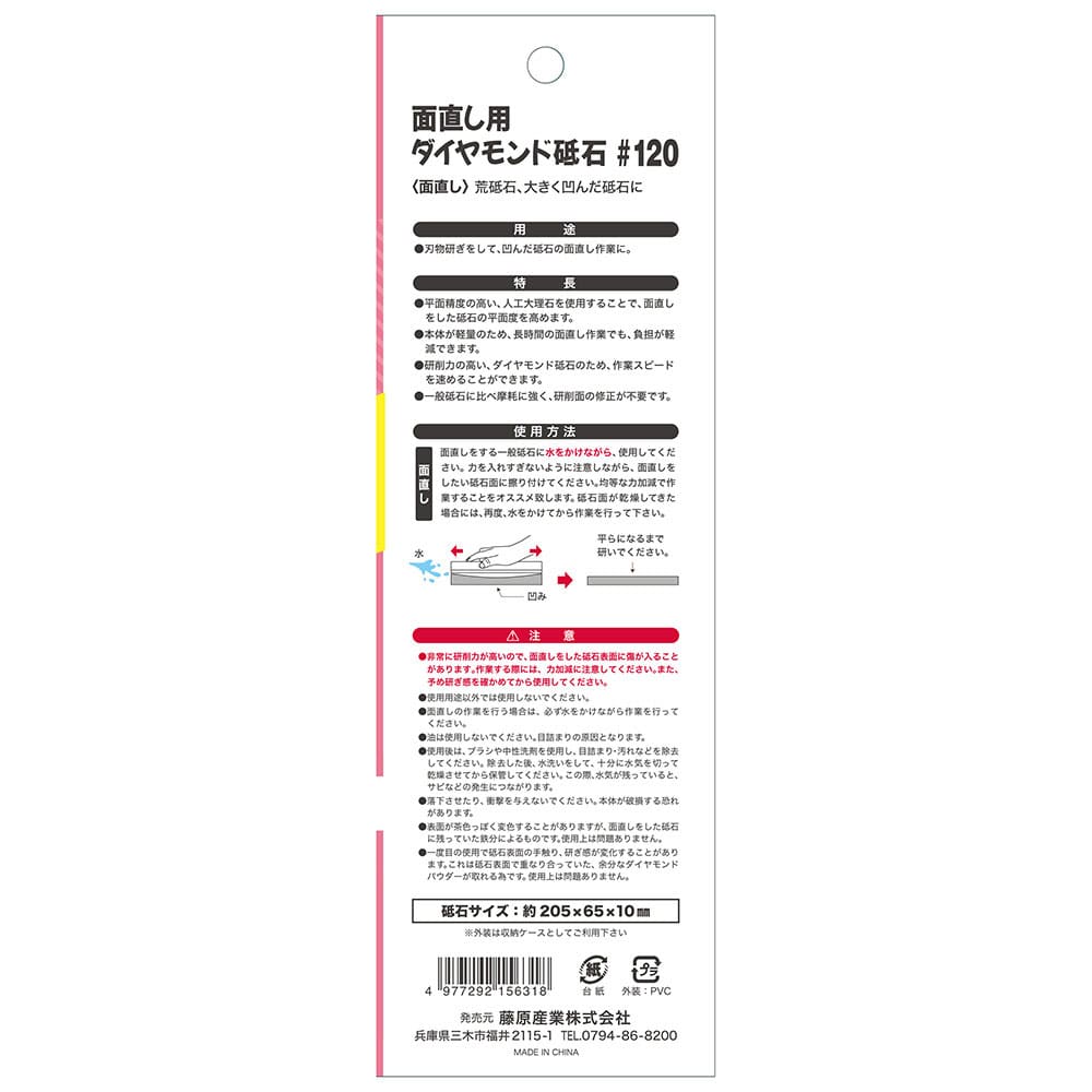 落下させたり、衝撃を与えないでください。本体が破損する恐れがあります。 表面が茶色っぽく変色することがありますが、面直しをした砥石に残っていた鉄分によるものです。使用上は問題ありません。一度目の使用で砥石表面の手触り、研ぎ感が変化することがあります。これは砥石表面で重なり合っていた余分なダイヤモンドパウダーが取れる為です。使用上は問題ありません。 (使用方法)面直しをする一般砥石に水をかけながら、使用してください。力を入れすぎないように注意しながら、面直しをしたい砥石面に擦り付けてください。均等な力加減で作業することをオススメ致します。砥石面が乾燥してきた場合には、再度、水をかけてから作業を行って下さい。