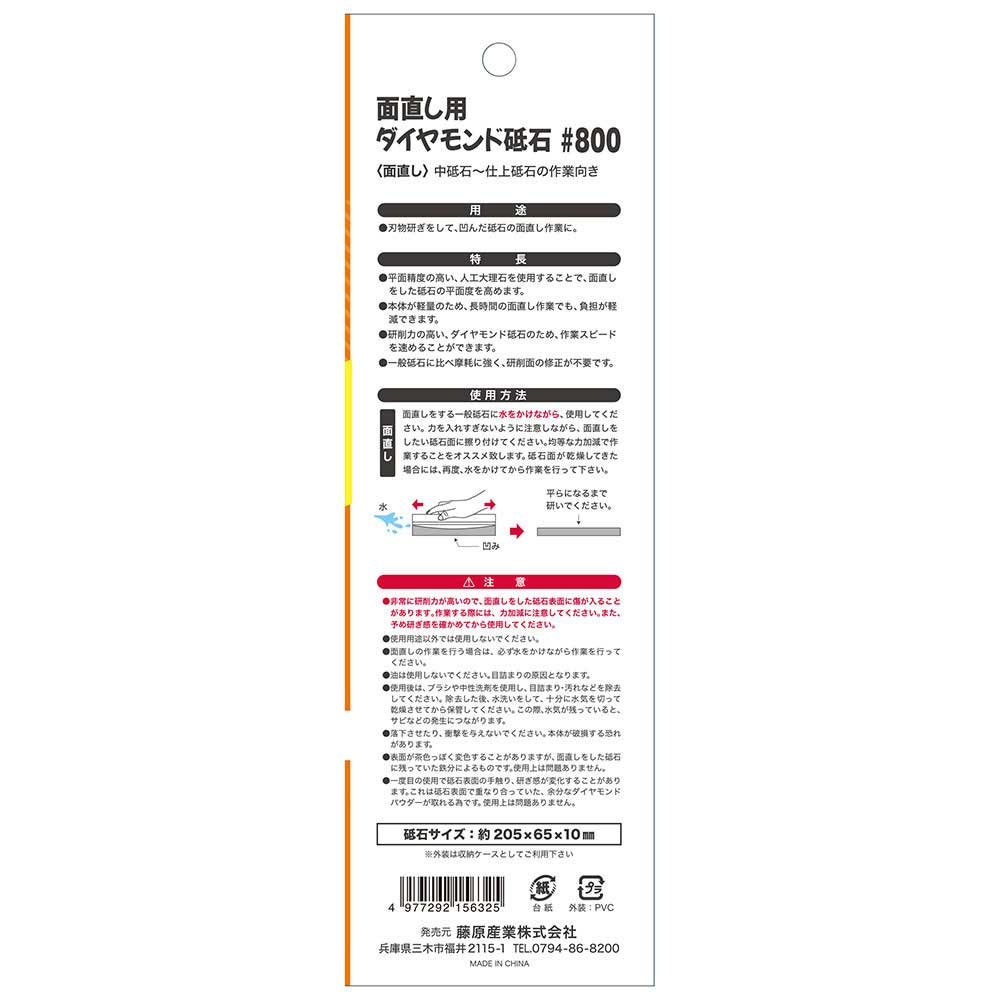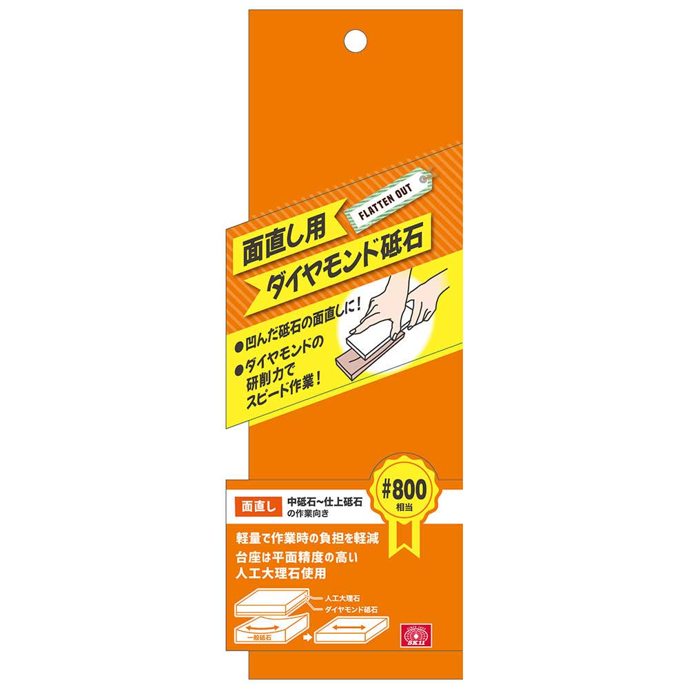 へこんだ砥石の面直しに最適なダイヤモンド砥石です。 刃物を研いだ後の、へこんだ砥石の平面だし作業。 軽量で平面精度の高い人工大理石をベースにすることで、作業負担を減らしながら、精度を高めた面直し作業が行えます。 一般砥石に比べ、摩耗に強く、研削面の修正が不要です。 研削力の高いダイヤモンド砥石のため、作業スピードを速めることができます。 中砥石~仕上砥石の作業向きです。 ●ダイヤモンド砥材粒度:800相当。 ●本体サイズ:約205×65×10mm。 ●研削面サイズ:約205×65×1mm。