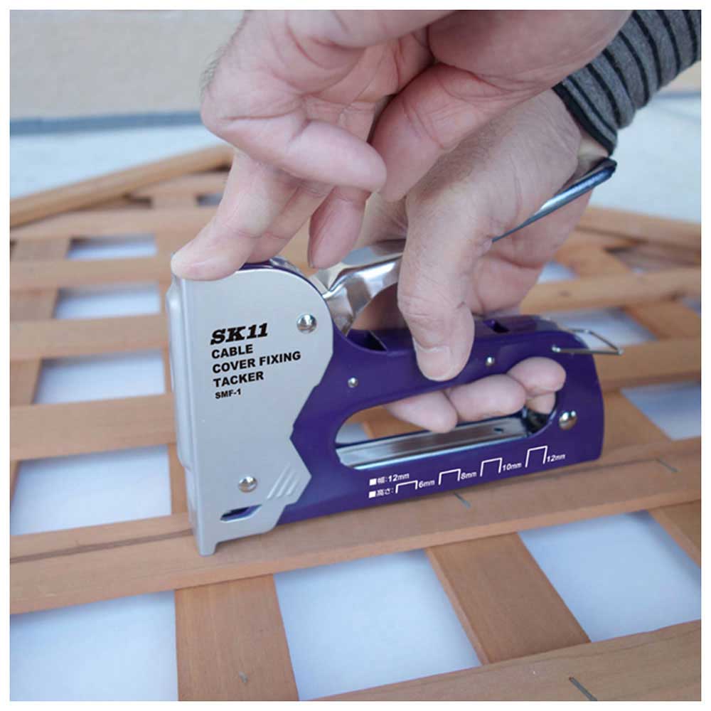 木材での、モールの固定に使えるハンドタッカーです。 プラスチックモールなどの壁面への固定。 配線用のモールを固定できる、特殊形状になっています。 射出口を特殊な形状にすることで、モールのような段差のある素材の固定が出来ます。 モール固定だけでなく、通常の木材への打ち込み作業にも使用出来ます。 ●使用可能ステープル:SL12-06・SL12-08・SL12-10・SL12-12。