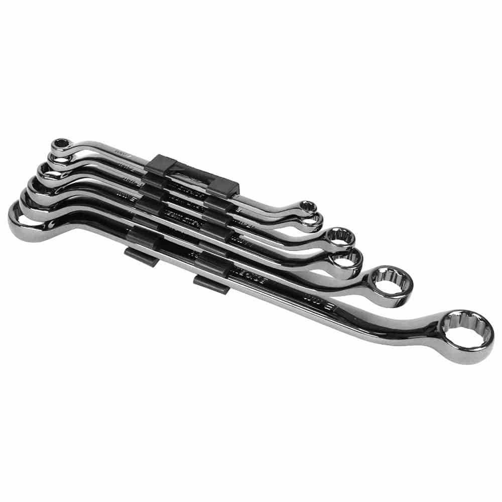 濃いツヤ、ガンメタリック仕上げのメガネレンチセットです。 六角ボルト・ナットの締付け、緩め作業。 表面にガンメタリック処理をしているので、キズが付きにくいです。 プロのニーズに対応できる品質・耐久性のあるメガネレンチです。 ●サイズ:6mmX7mm・8mmX9mm・10mmX12mm・11mmX13mm・14mmX17mm・19mmX21mm。 ●セット内容:レンチX6本・ホルダーX1。