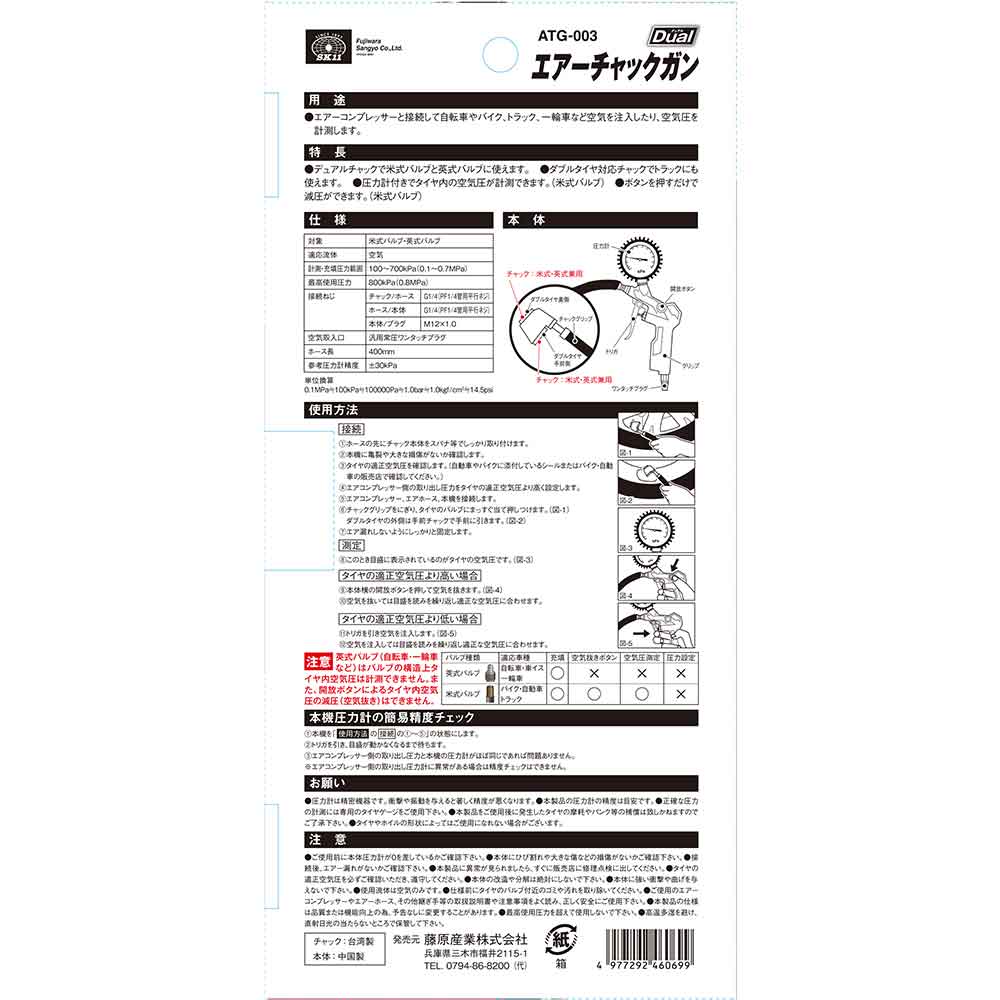 SK11 藤原産業株式会社 電動工具 エアーツール タイヤチャックゲージ