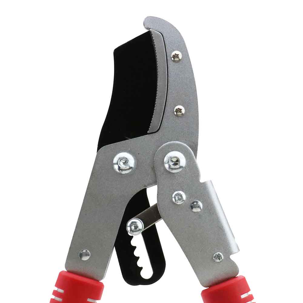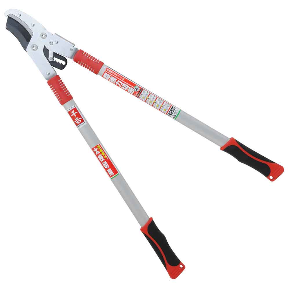 パイプ柄だから軽量・丈夫。ラチェット機構で作業も楽々です。 太枝切鋏。 剪定作業用です。 ラチェット機構で作業が楽です。 軽量・丈夫なパイプ柄を採用しています。 樹脂ハンドルで握りやすく、疲れにくいです。 ●全長:約780mm。 ●生木切断能力:50mmまで。 ●ラチェット式。